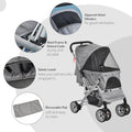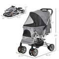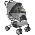Pawhut Travel Pet Stroller For Dogs, Cats, One Click Fold Jogger Pushchair With Swivel Wheels, Braket, Basket Storage, Safety Belts, Adjustable Canopy, Zippered Mesh Window Door, Grey Grey Steel