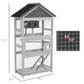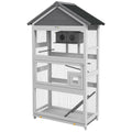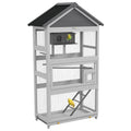 Pawhut Wooden Bird Aviary, 67" Outdoor Bird Cage With Slide Out Tray, Three Doors, Birdhouse, Ladder, Perches For Finches, Parakeets, Gray Gray Wood