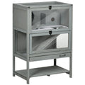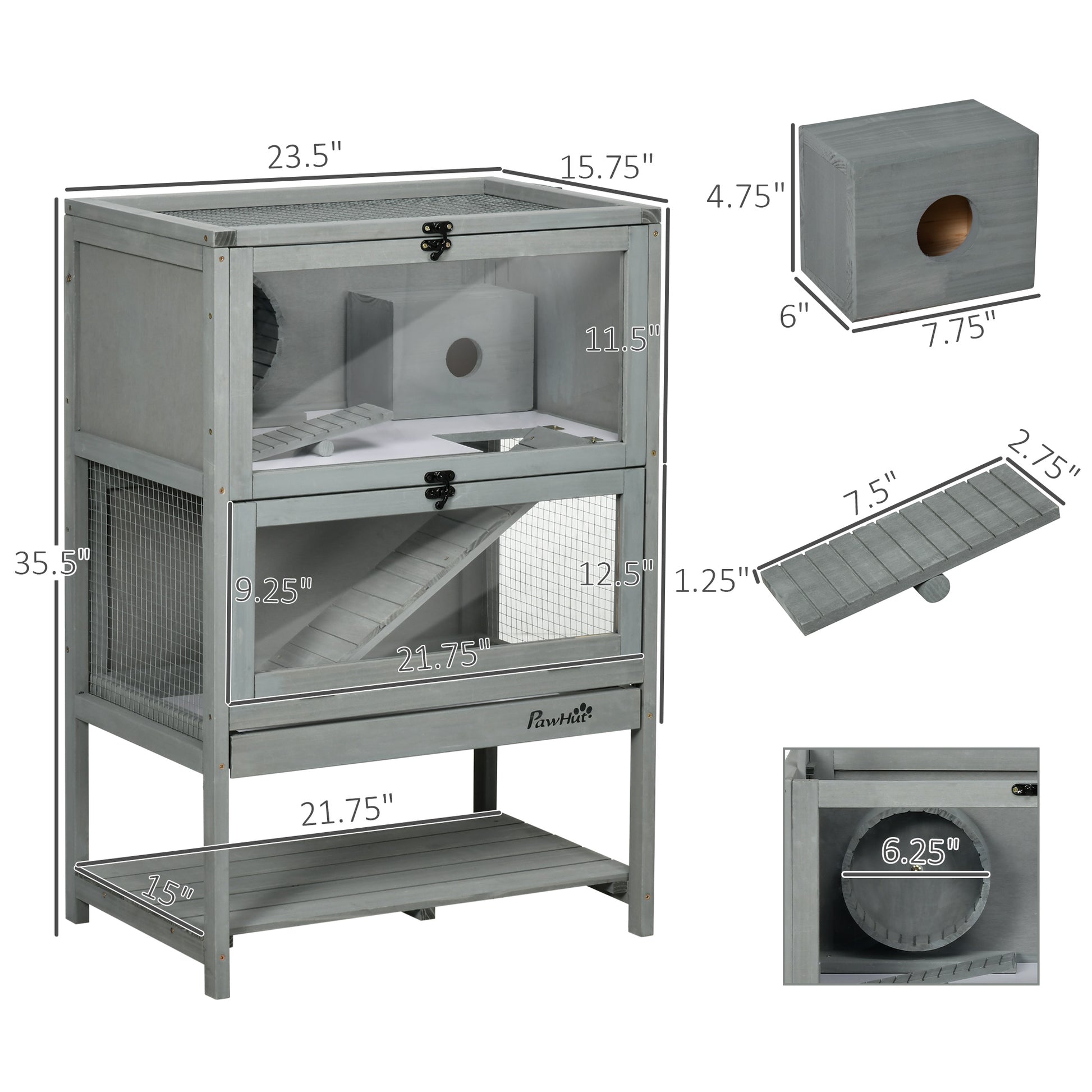 Pawhut Wooden Hamster Cage With Storage Shelf, Large Hamster Cage Including Seesaw, Small Animal Cage With Sliding Tray, Wide Ramp For Racing, Running Wheel, 35.5" H Grey Wood