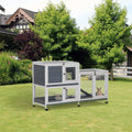 Pawhut Wooden Rabbit Hutch Bunny Hutch Elevated Pet House Cage Small Animal Habitat With No Leak Tray Lockable Door Openable Top For Indoor 57.75" X 18" X 32.5" Grey Grey White Wood