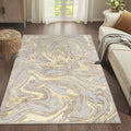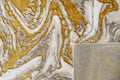 "Paz" Luxury Area Rug In Beige And Gold Abstract Design Multicolor Polyester