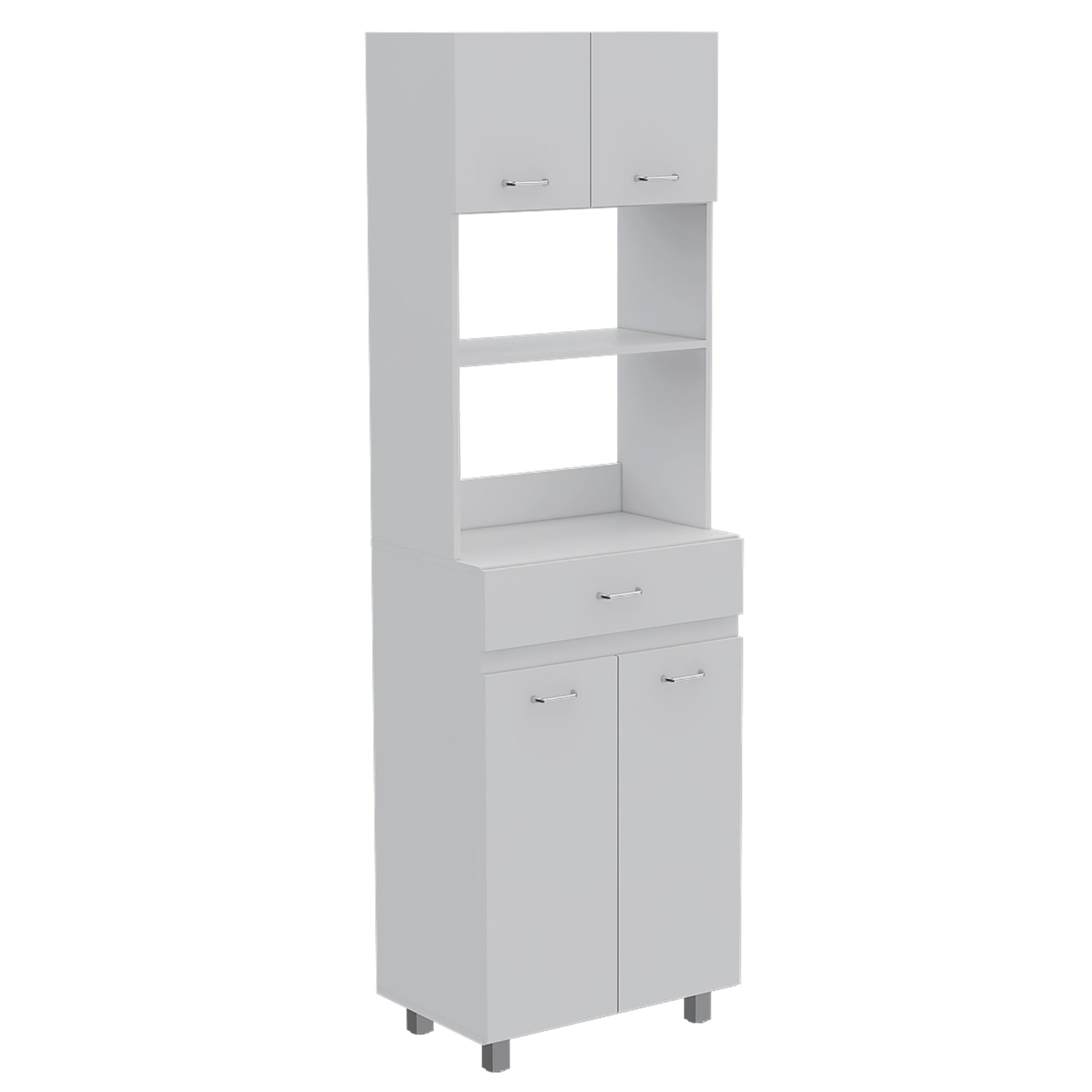 Pembrooke 2 Shelf 1 Drawer Microwave Pantry Cabinet White White Particle Board