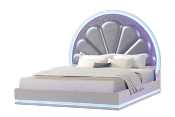 Perla King 5 Pc Vanity Led Bedroom Set Made With Wood In Milky White White Bedroom Contemporary,Modern Solid Wood Mdf Wood