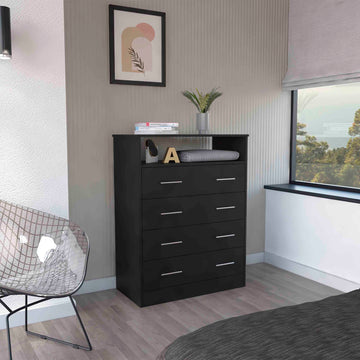 Peru L Four Drawer Dresser, Superior Top, One Open Shelf Black Black Bedroom Modern Particle Board Particle Board