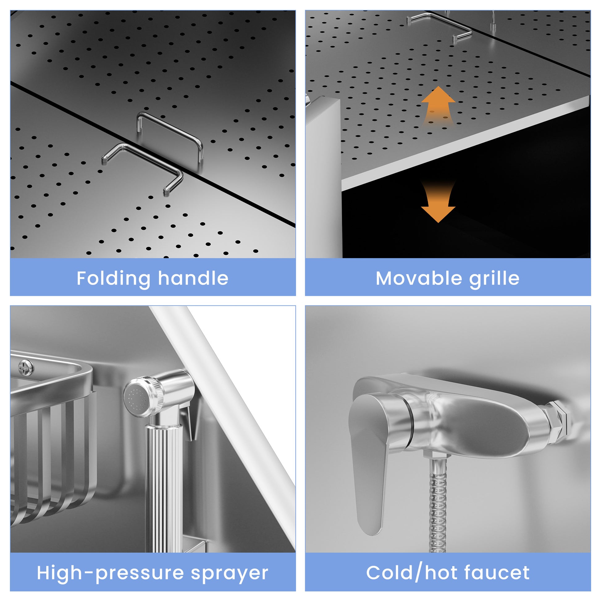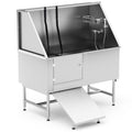 Pet Bathtub 50 Inch Professional Dog Rinse Station Left Side Ramp With Faucet, Leash And Other Accessories, Adjustable Legs, Pet Wash Station For Dogs Of All Sizes,50.2"L X 27.6"W X 60.2"H Silver Stainless Steel