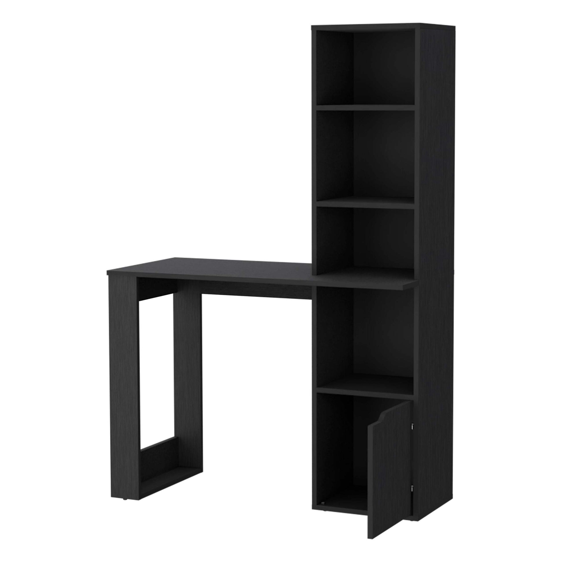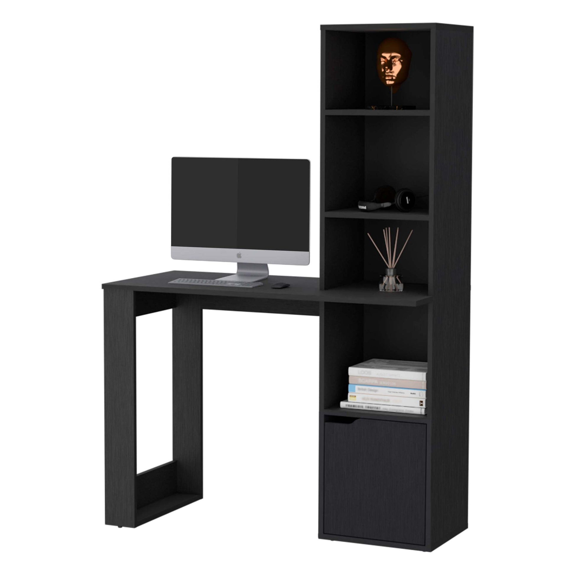 Peterson Computer Desk With 4 Tier Bookcase And 1 Door Cabinet Black Black Engineered Wood