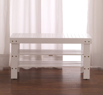 Pina Quality Solid Wood Shoe Bench, White Finish White Wood