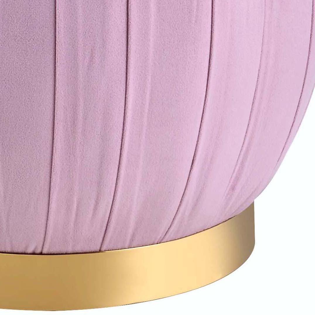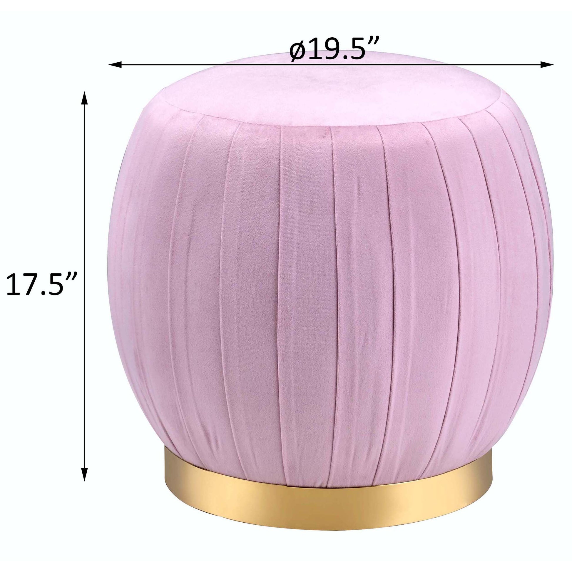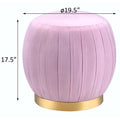 Pink Carnation And Gold Round Tufted Ottoman Pink Velvet Wood Primary Living Space Backless Solid Pink Luxury Round Armless Fabric Metal