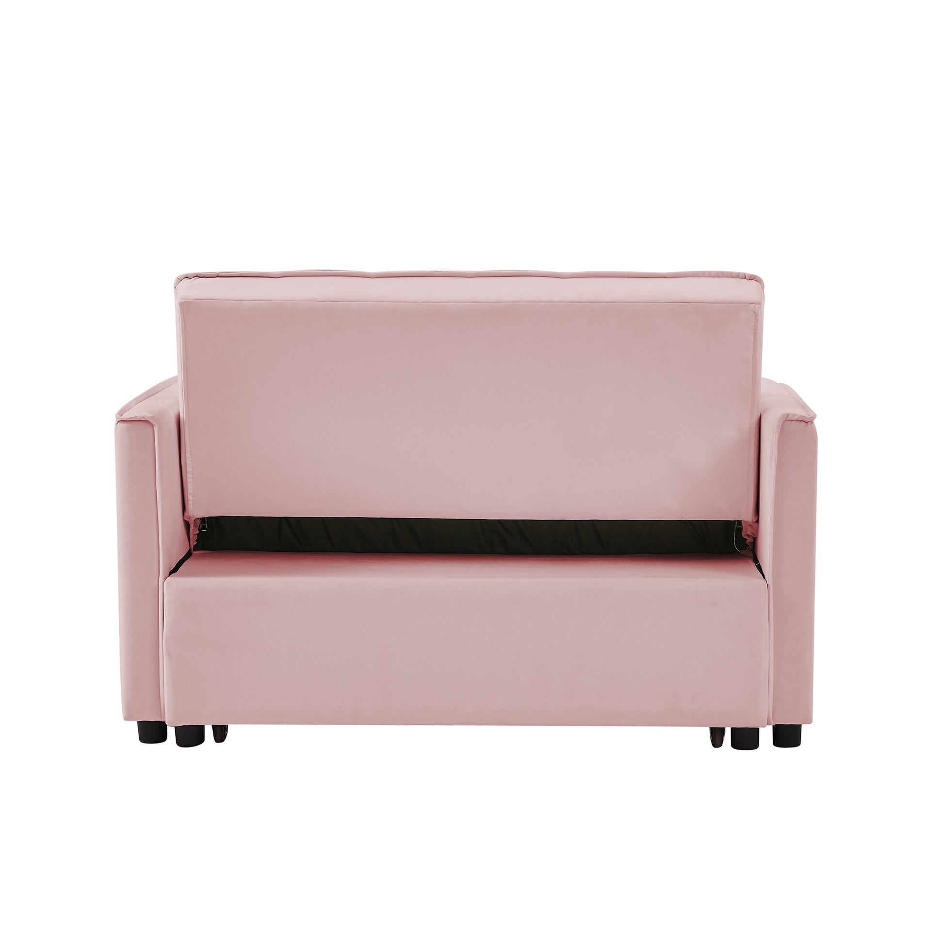 Pink Velvet Loveseat Sofa Bed Pink Wood Tufted Back Square Arms Foam Velvet