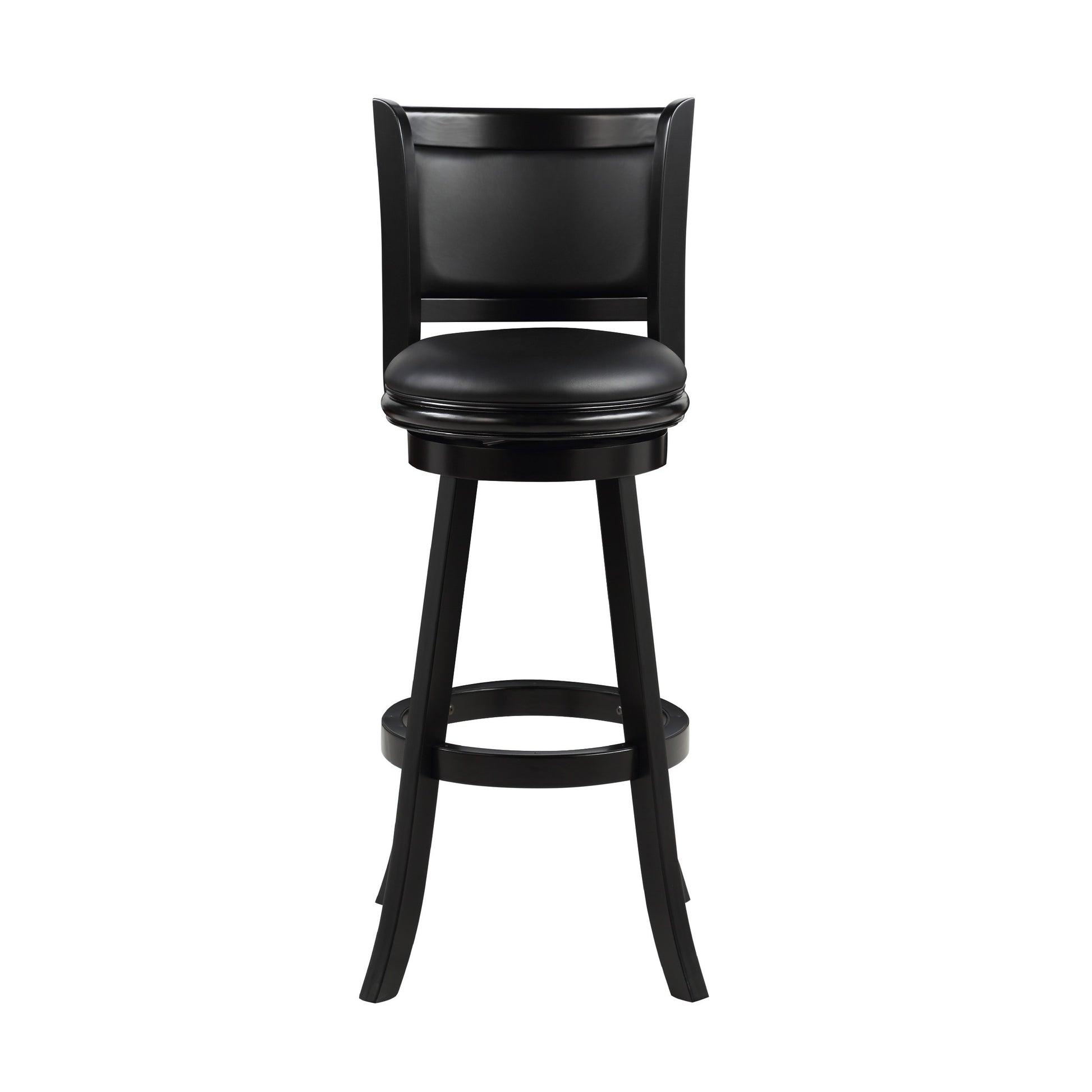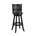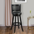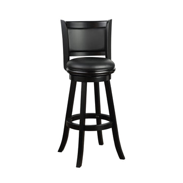 Pio 34 Inch Extra Tall Swivel Bar Stool, Solid Wood, Faux Leather, Black Black Grey Wood