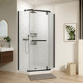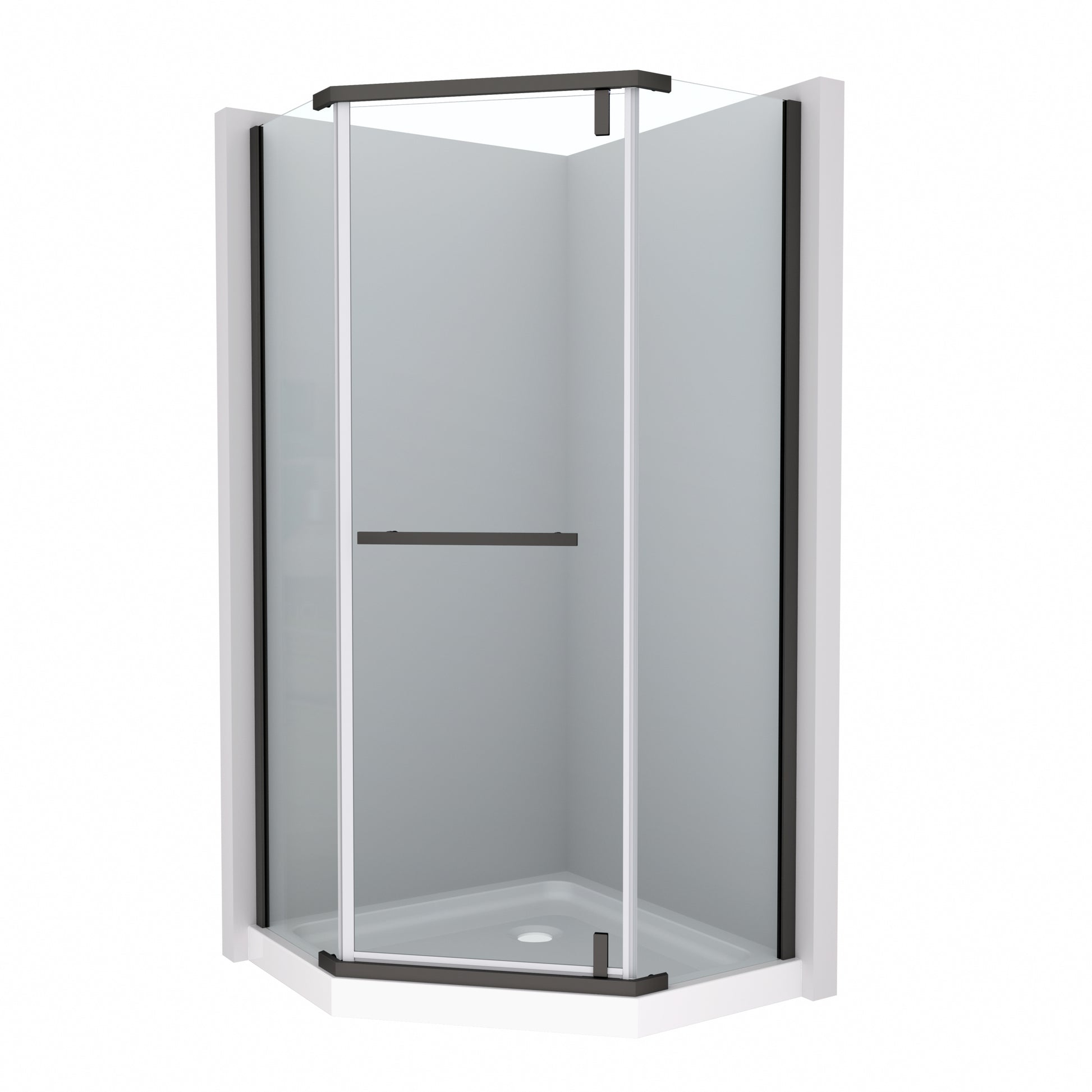 Pivot Shower Door, With 1 4" Tempered Glass, 34.75 In. X 72 In. Frameless Neo Angle Pivot Shower Enclosure In Matte Black Matte Black Bathroom Aluminium Alloy