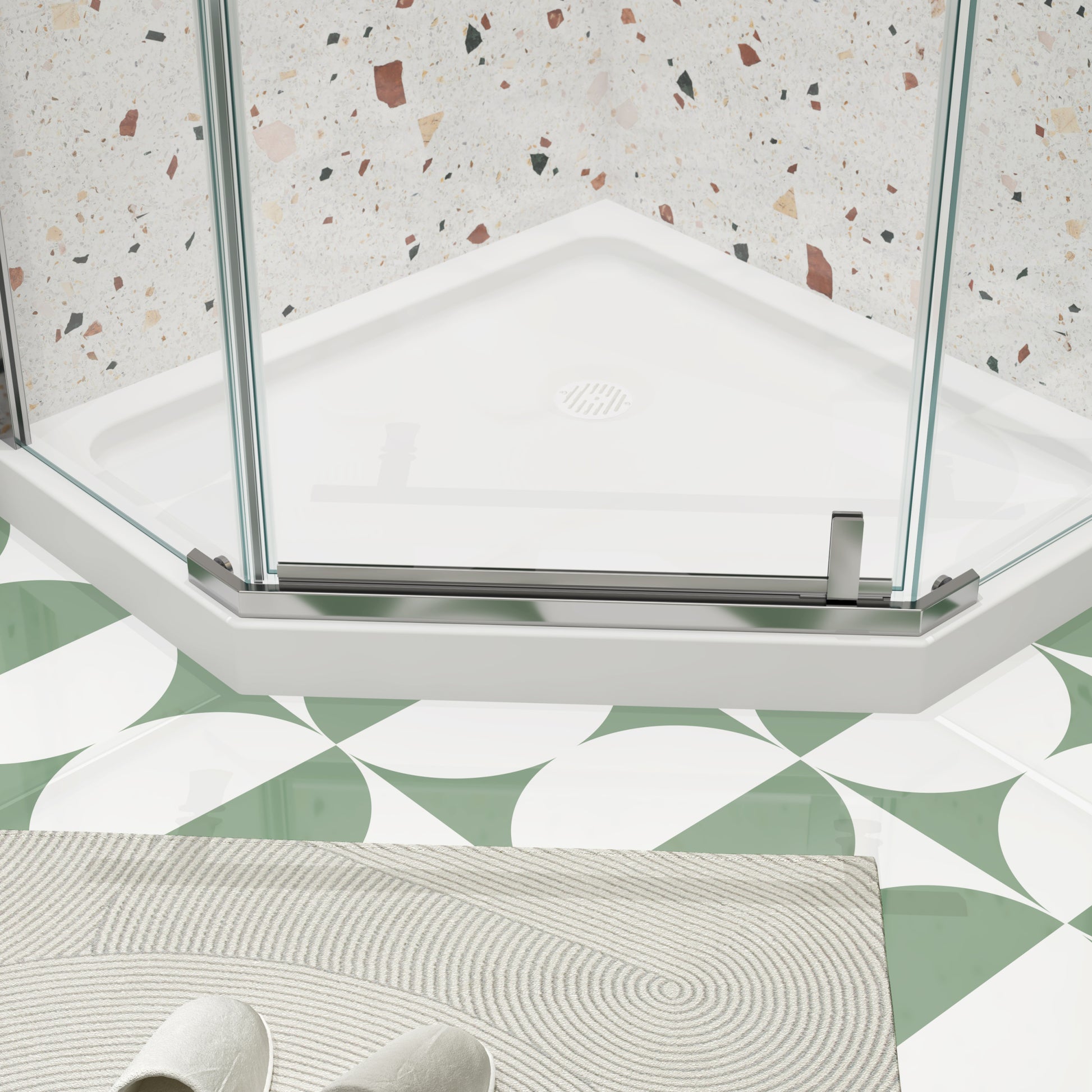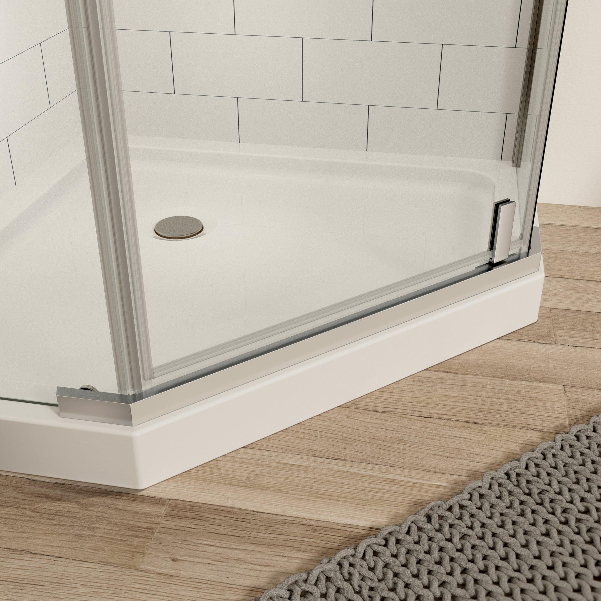 Pivot Shower Door, With 1 4" Tempered Glass34.75 In. X 72 In. Frameless Neo Angle Pivot Shower Enclosure In Chrome. Chrome Aluminium Alloy