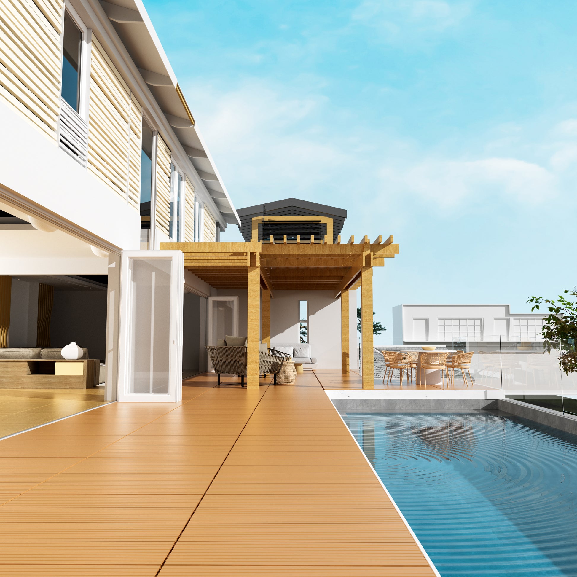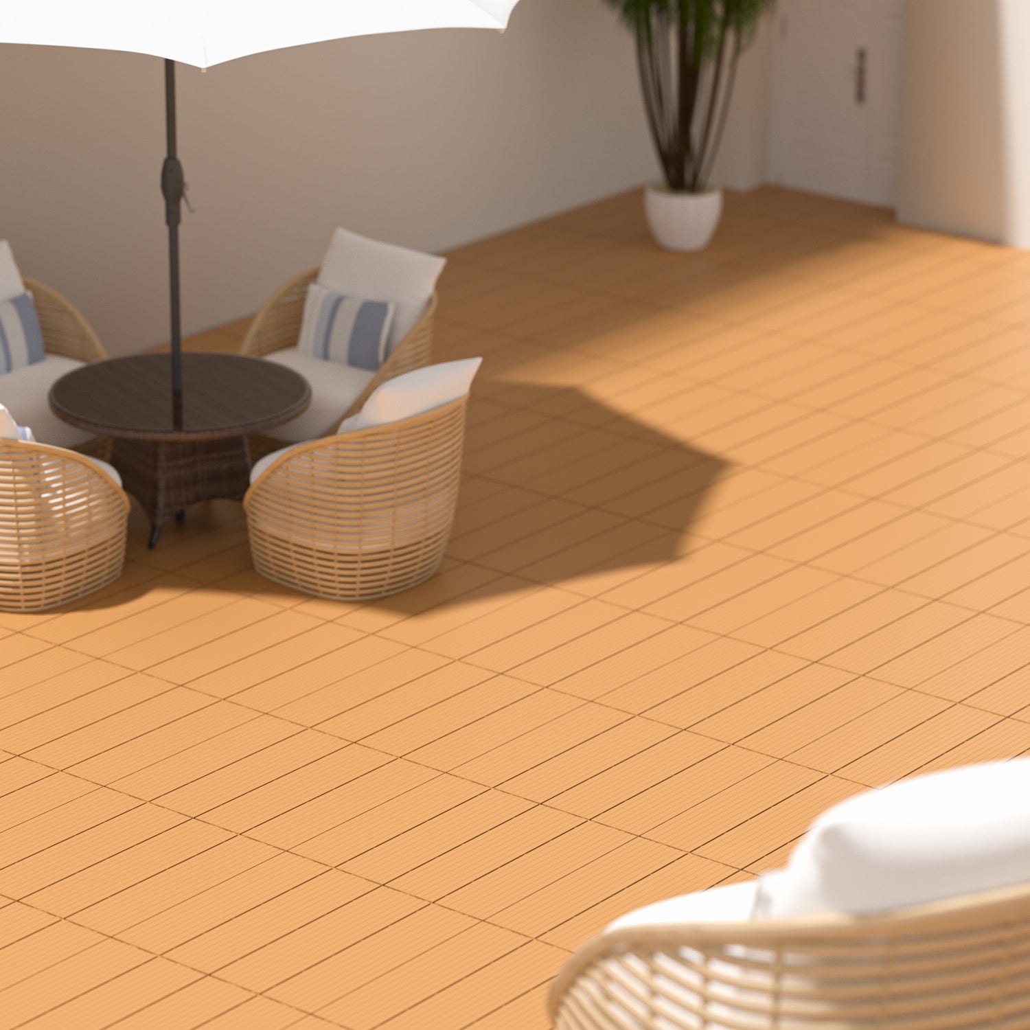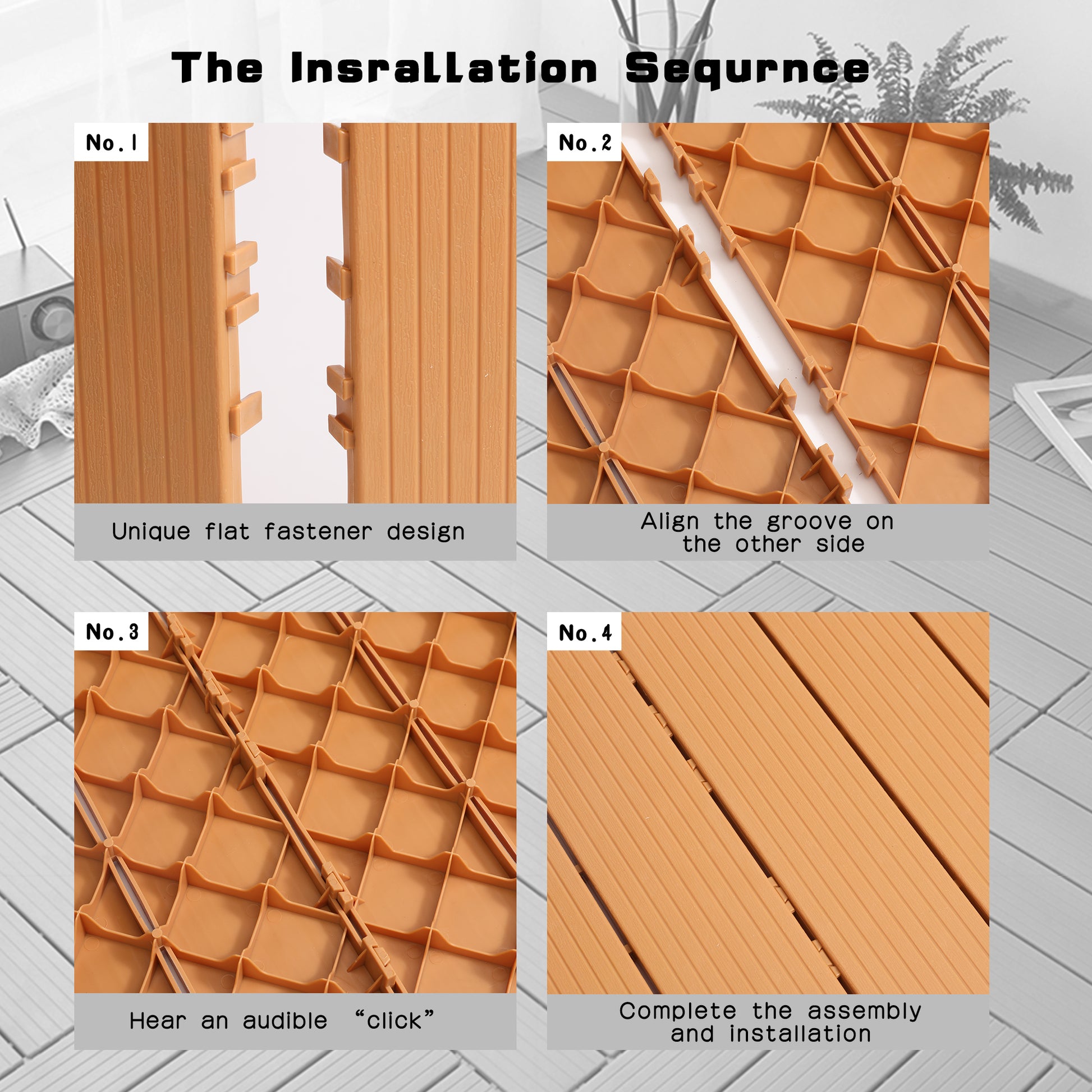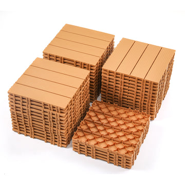 Plastic Interlocking Deck Tiles, 44 Pack Terrace Deck Tiles, 12 "X12" Square Waterproof Outdoor All Weather Use, Pool Balcony Backyard Terrace Deck Tiles, Original Wood Color Burly Wood Polypropylene