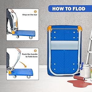 Platform Truck With 1320Lb Weight Capacity And 360 Degree Swivel Wheels, Foldable Push Hand Cart For Loading And Storage, Blue Blue Steel
