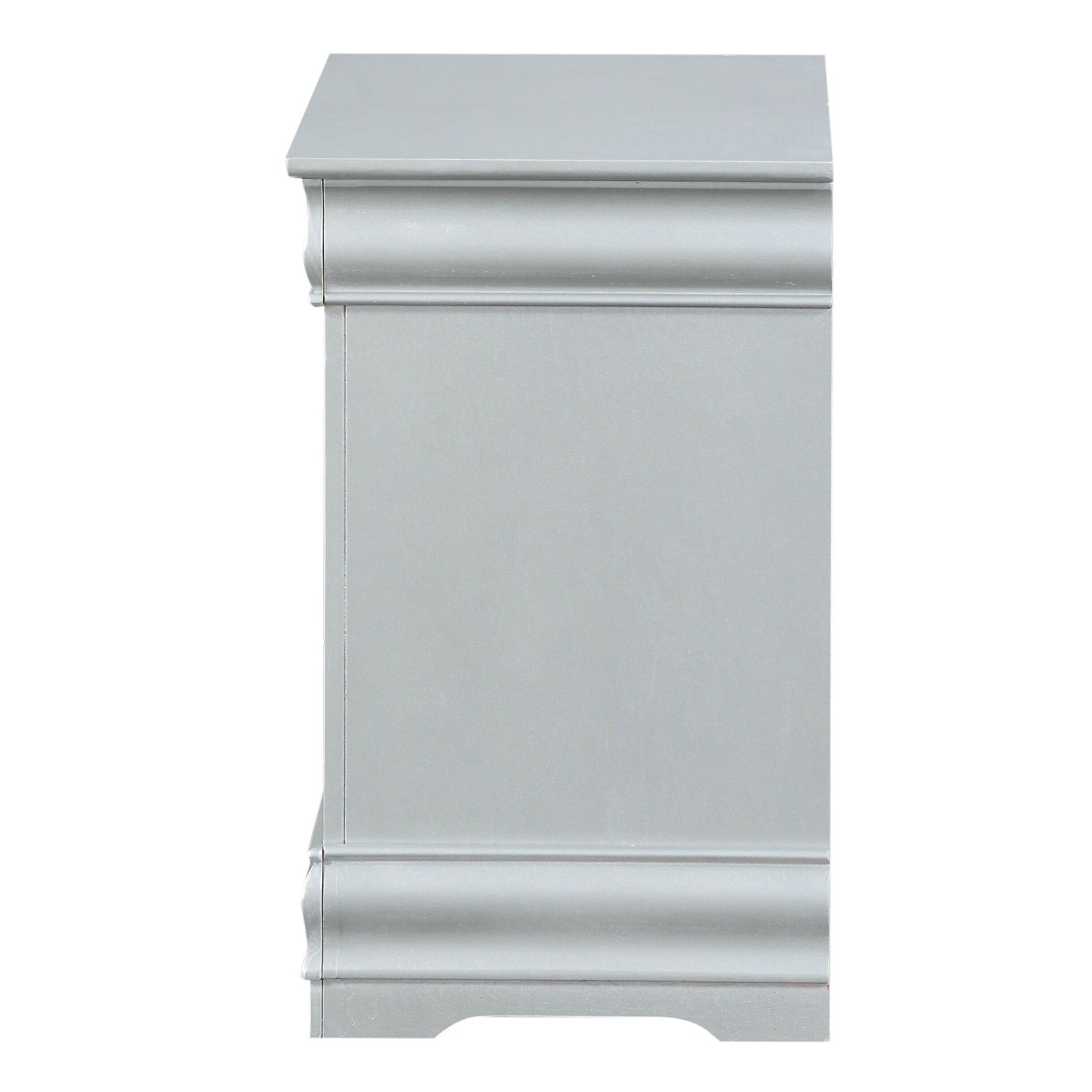 Platinum 2 Drawer Nightstand Silver 2 Drawers Bedroom Rectangle Modern Rubberwood Solid Wood Silver Wood