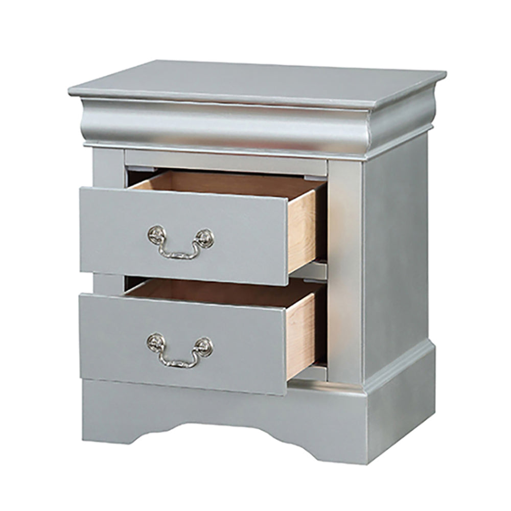 Platinum 2 Drawer Nightstand Silver 2 Drawers Bedroom Rectangle Traditional Pine Drawers Wood