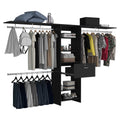 Plego 70"W 118"W Drawers Closet System, One Drawer,Three Hanging Rods, Five Shelves Black Black Particle Board Particle Board