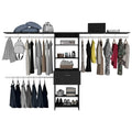 Plego 70"W 118"W Drawers Closet System, One Drawer,Three Hanging Rods, Five Shelves Black Black Particle Board Particle Board