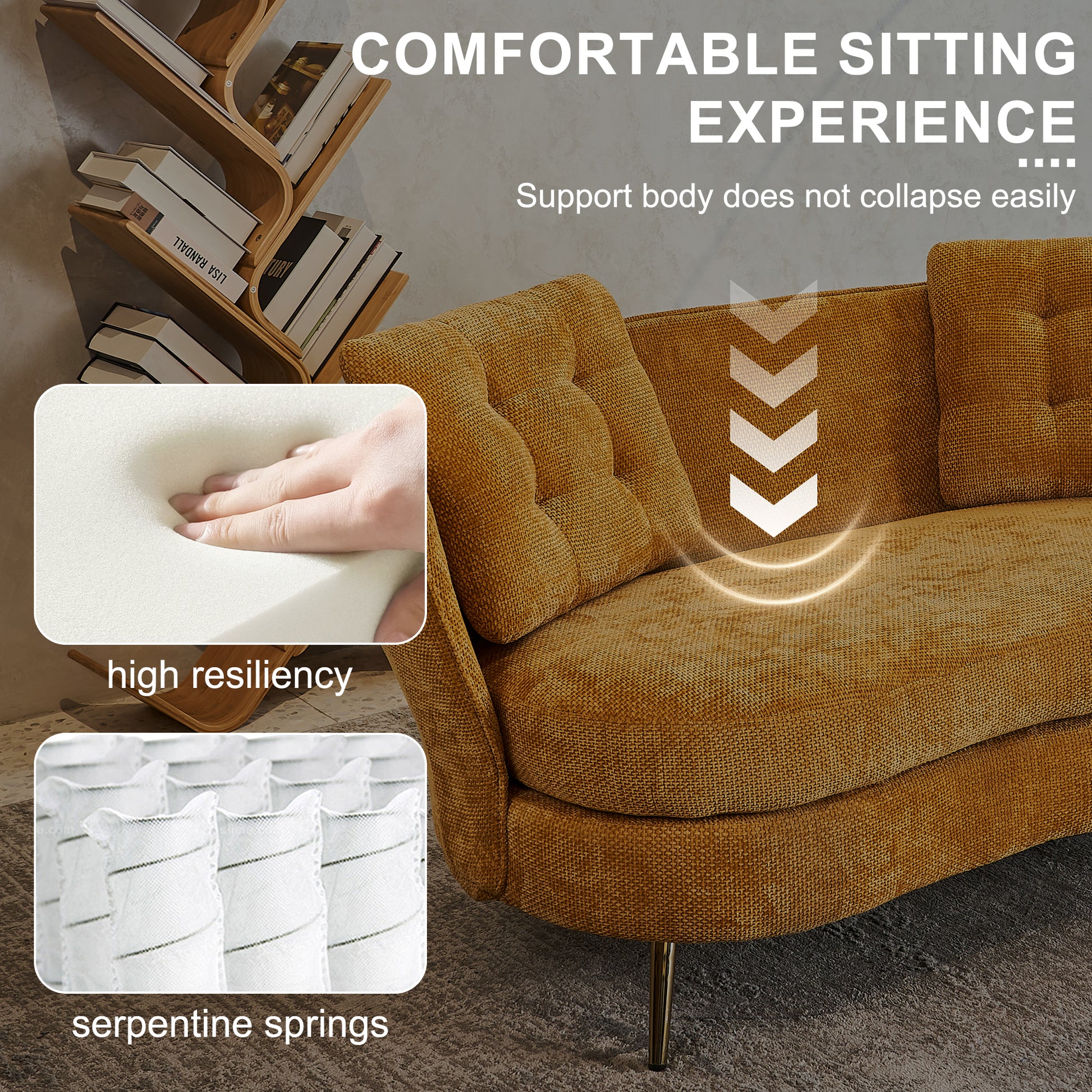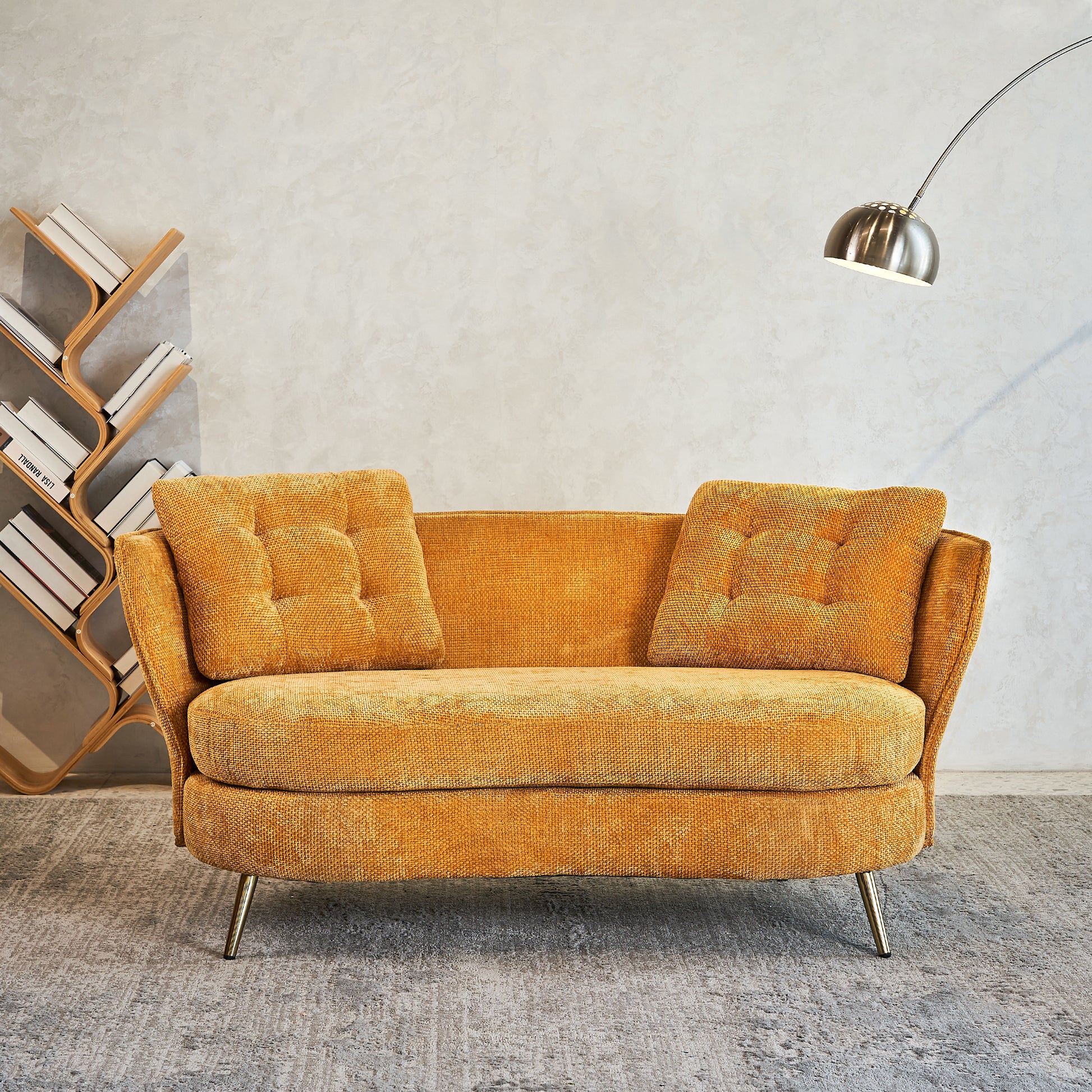 Polyester Fiber Loveseat Sofa Upholstered Couch With Golden Metal Legs Club Two Seat Sofa For Living Reading Room Bedroom Apartment Small Space Dorm,Yellow. Yellow Polyester Wood Primary Living