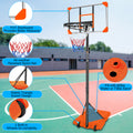 Portable Basketball Goal System With Stable Base And Wheels, Use For Indoor Outdoor Teenagers Youth Height Adjustable 5.6 To 7Ft Basketball Hoop 28 Inch Backboard Orange Sporty Iron
