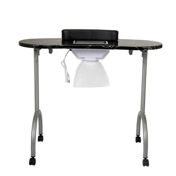 Portable & Foldable Manicure Table Nail Table Desk With Electric Dust Collector, 4 Lockable Wheels, Carry Bag, Black Black Mdf