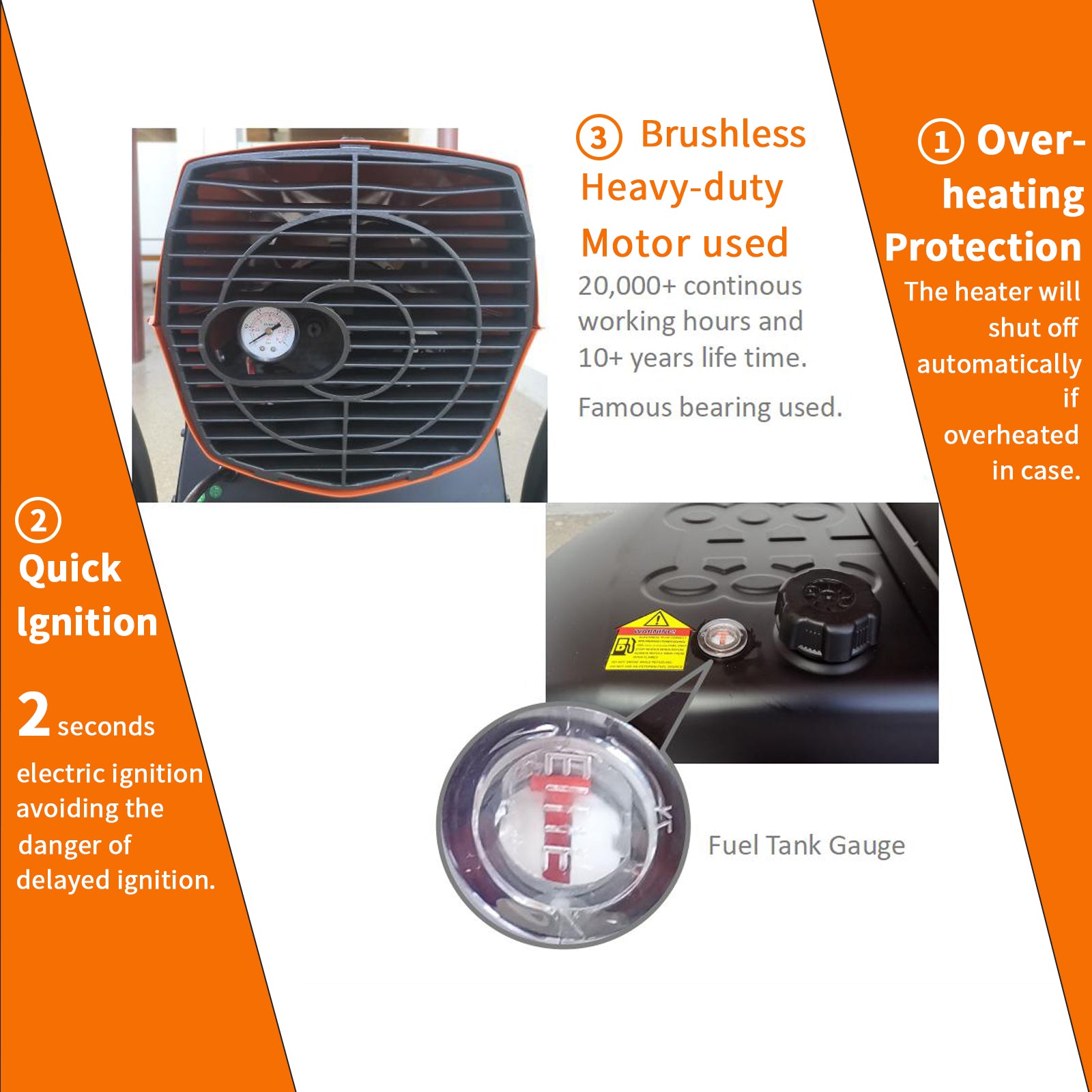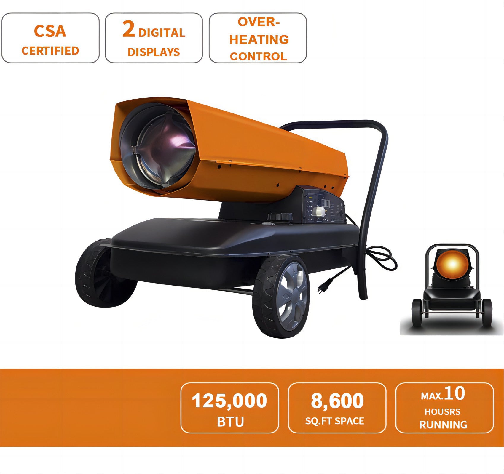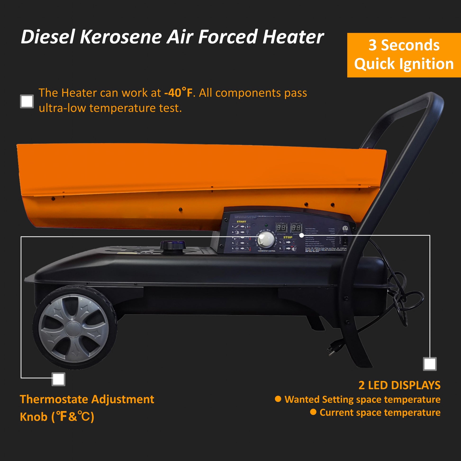 Portable Movable Torpedo Forced Air Heavy Duty 125000Btu Kerosene Diesel Heater With Thermostat Control And Overheat Protection For Jobsite,Garage,Construction Site And Farm. Orange Multi Garden &