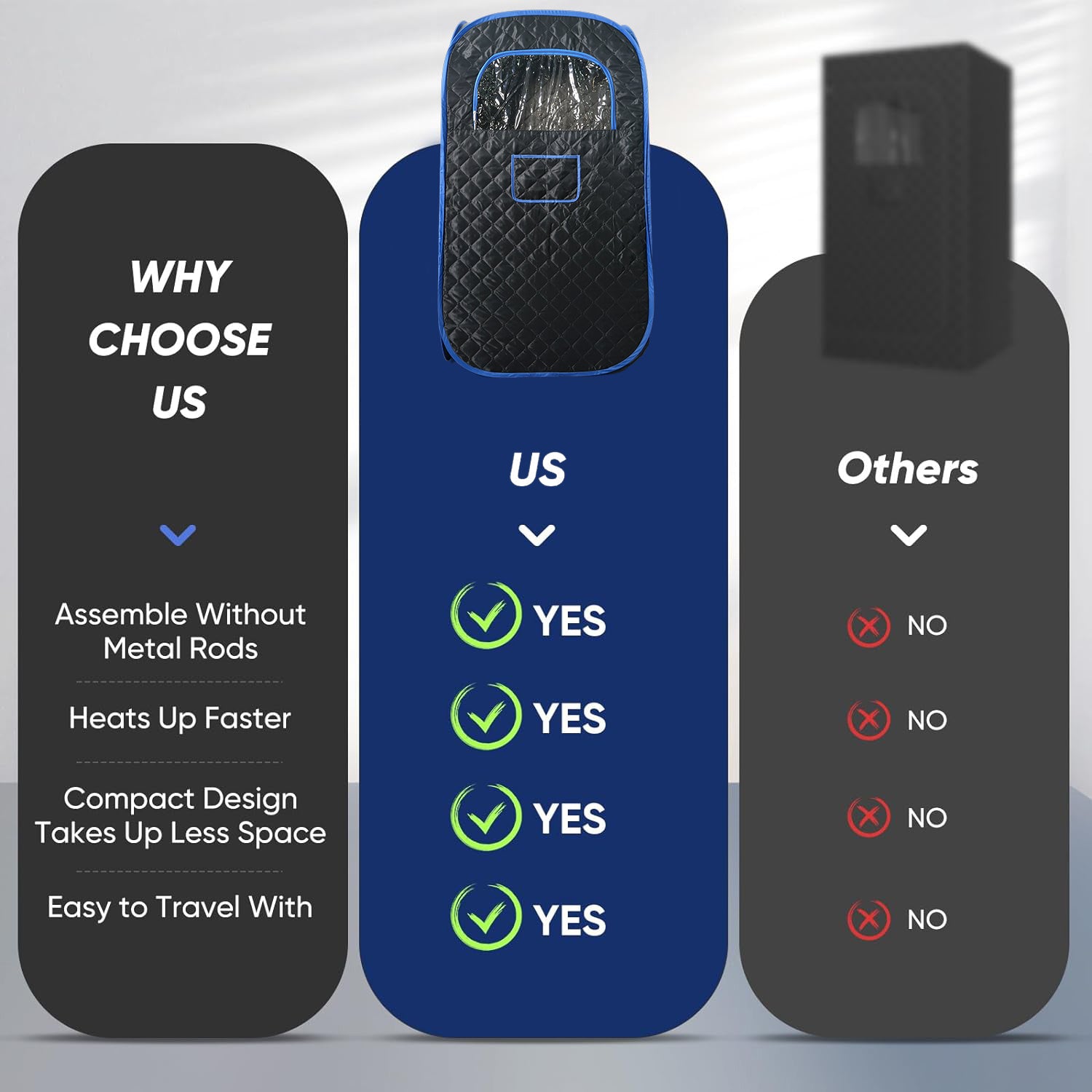 Portable Steam Sauna, Portable Sauna For Home, Sauna Tent Sauna Box With 3L Steamer With Remote Control And Folding Chair, Black Black Blue Fabric