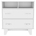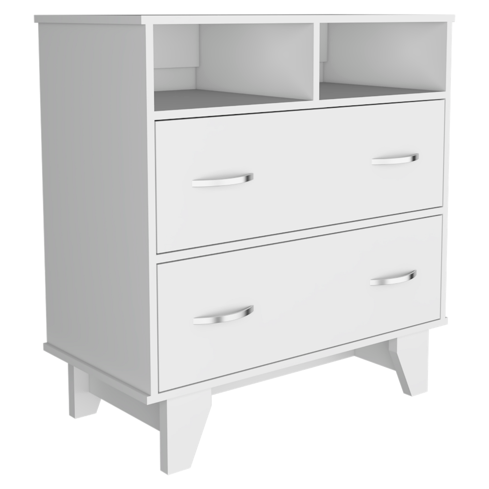 Portanova Two Drawer Dresser, Two Open Shelves, Superior Top, Four Legs White White Bedroom Modern Particle Board Particle Board