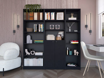 Poston 3 Piece Home Bookcase Set, 67" Wide With 13 Shelves And Two Door Cabinetliving Room Set Set Black Black Particle Board
