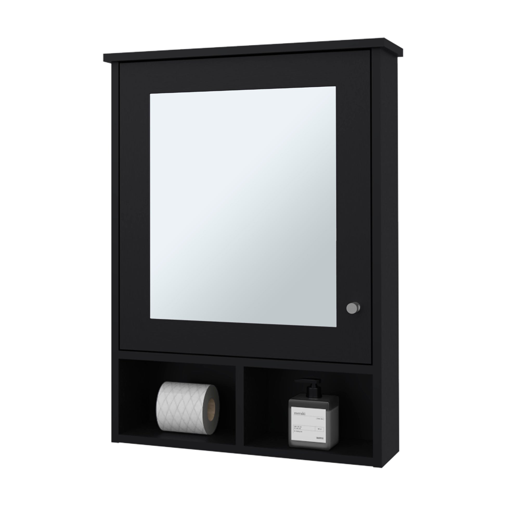 Poston Medicine Cabinet With A Door And Included Mirror, Black Black 1 5 Up To 17 In 24 To 31 In Mirror Included Bathroom Wall Mounted Modern 5 10 Inches Particle Board Melamine