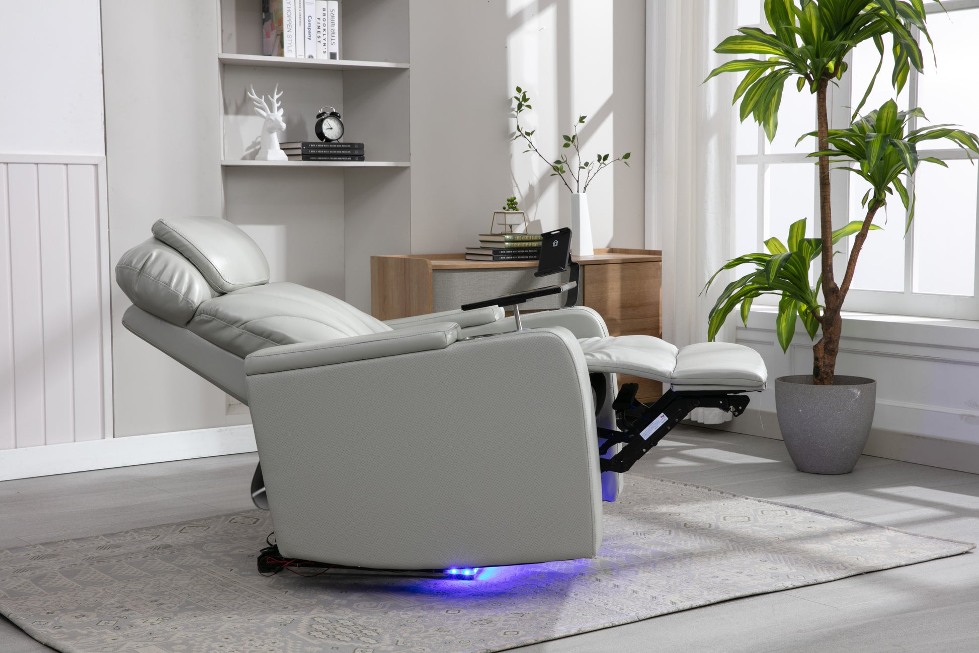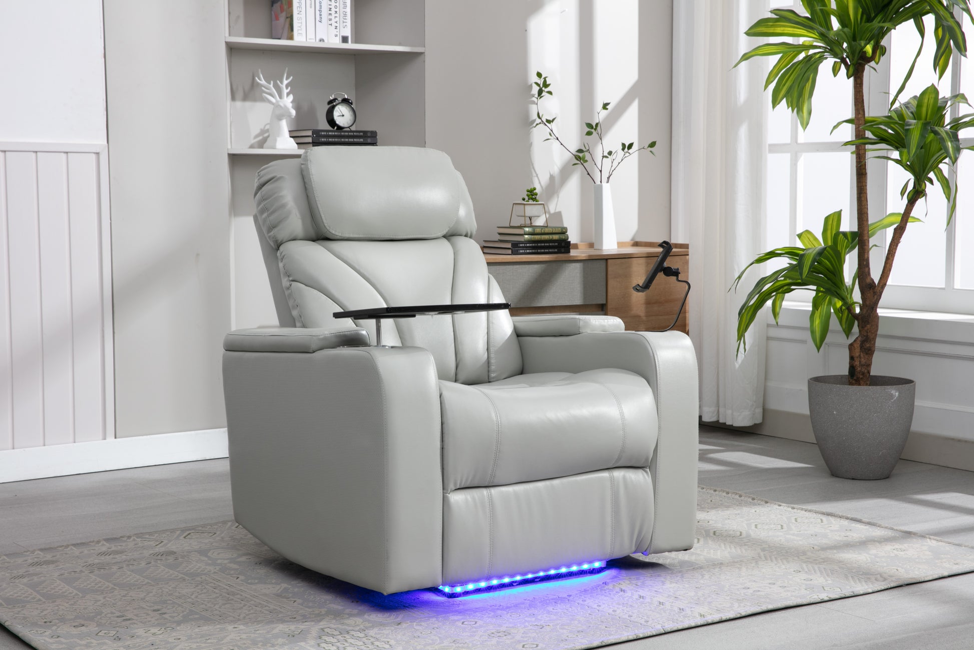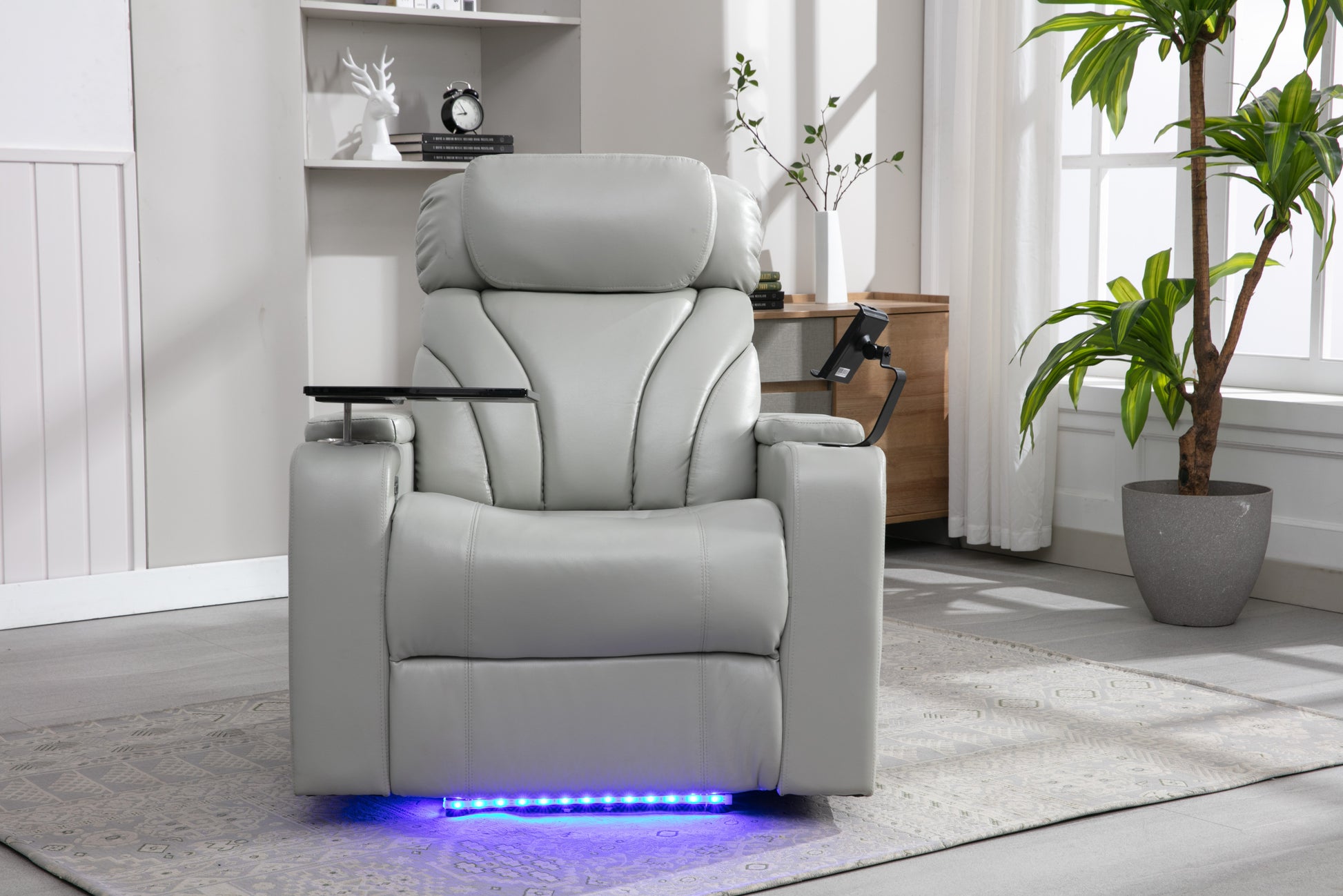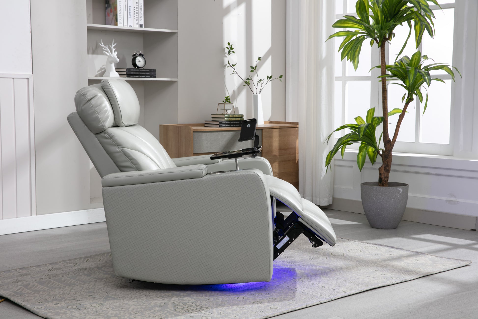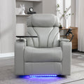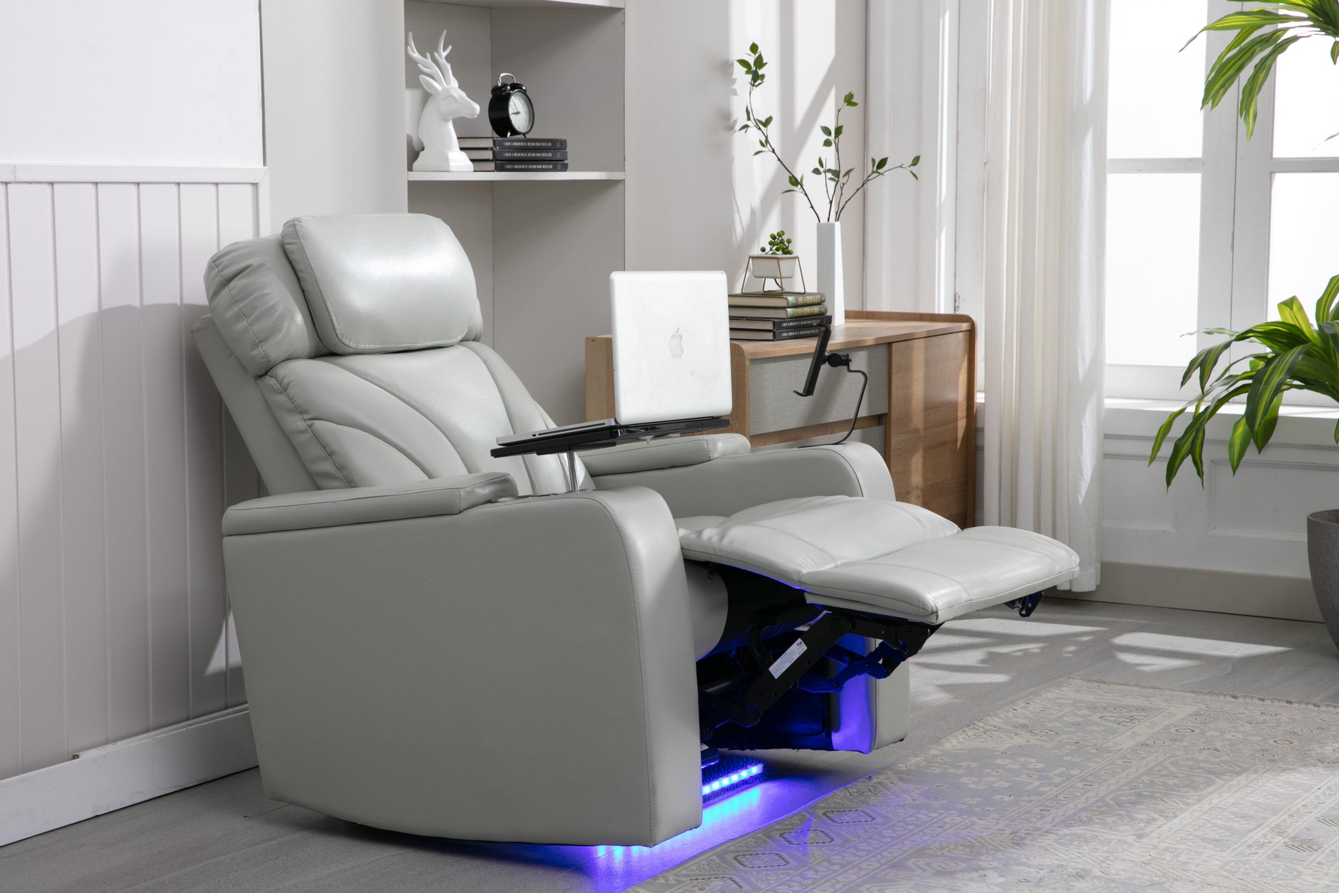 Power Motion Recliner With Usb Charging Port And Hidden Arm Storage, Home Theater Seating With Convenient Cup Holder Design ,And Stereo Light Grey Light Grey Foam Pu
