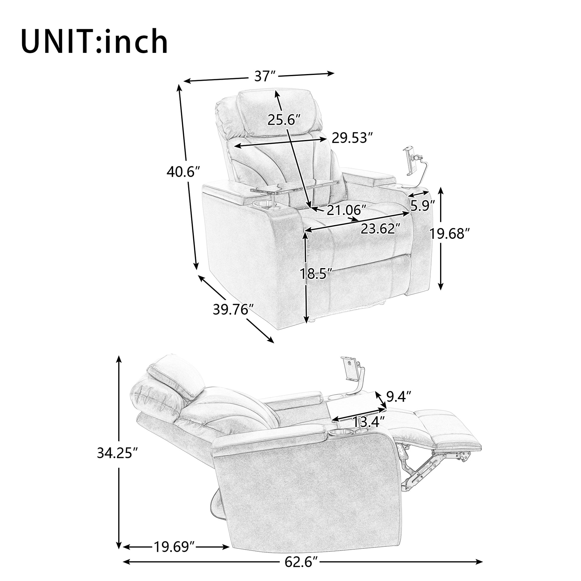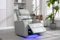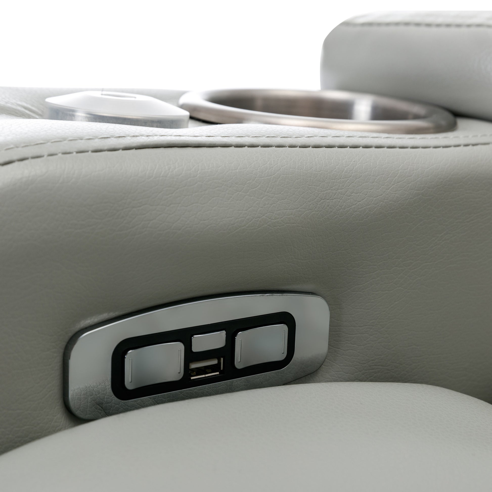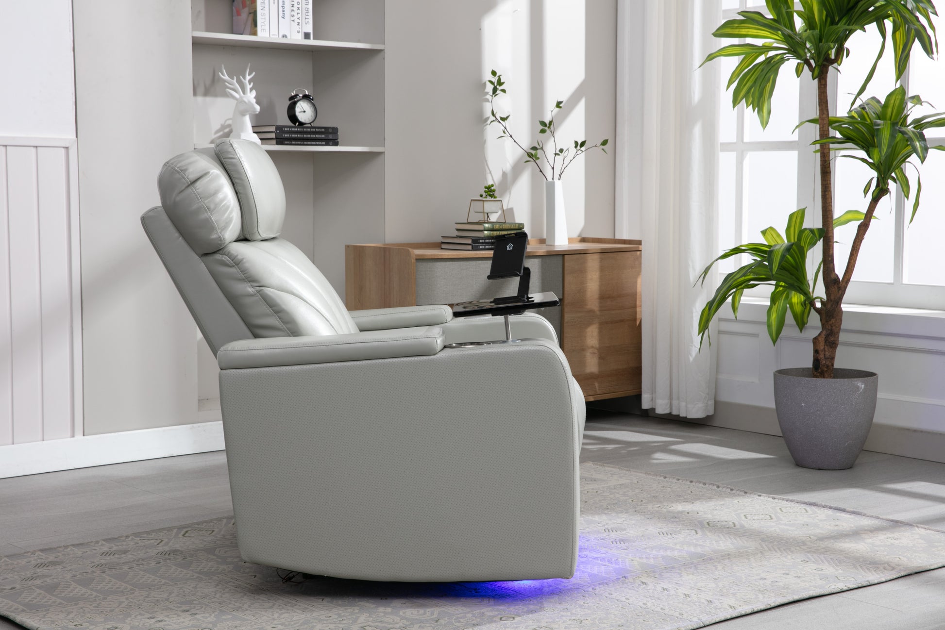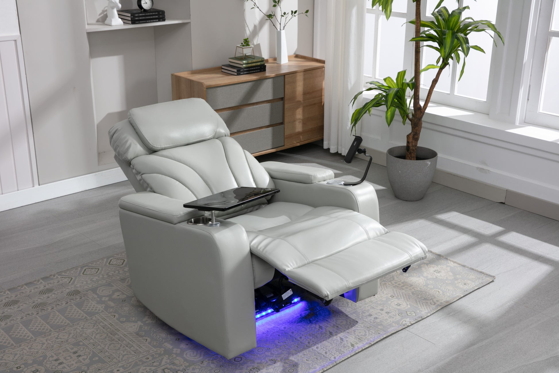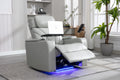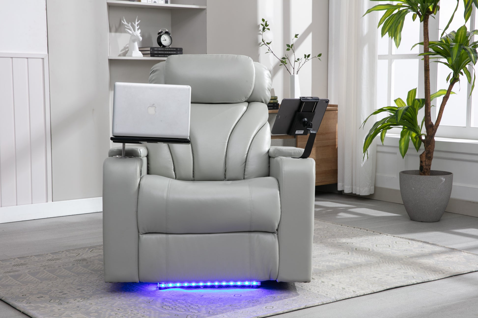 Power Motion Recliner With Usb Charging Port And Hidden Arm Storage, Home Theater Seating With Convenient Cup Holder Design ,And Stereo Light Grey Light Grey Foam Pu