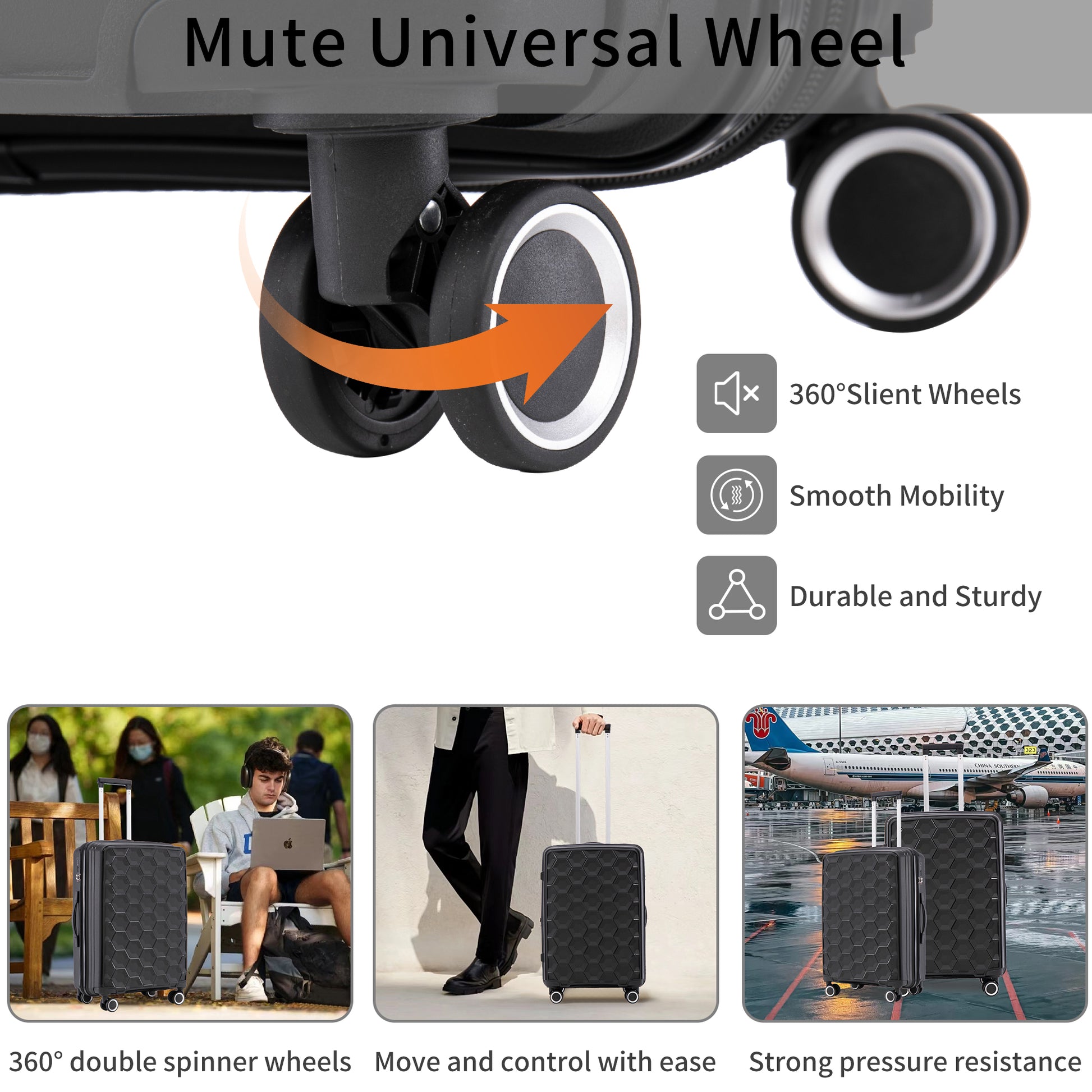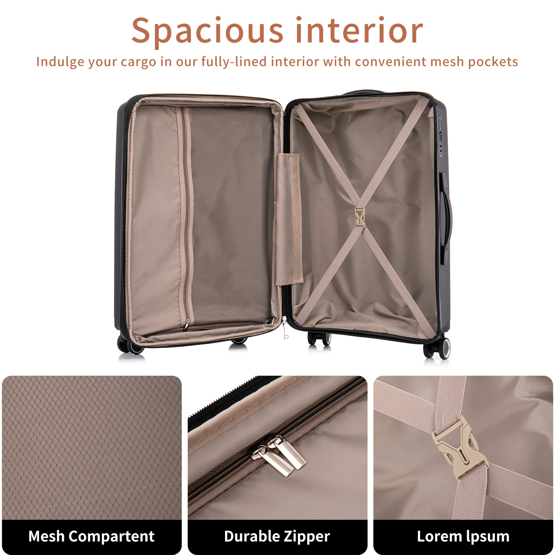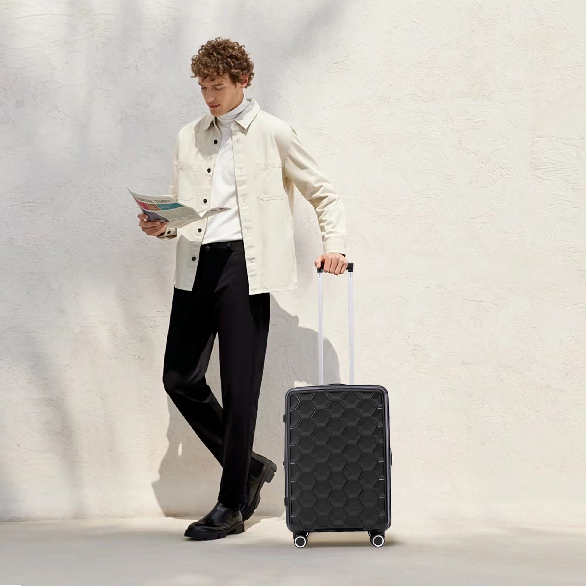 Pp Luggage Sets 3 Piece 20 24 28 , Expandable Carry On Luggage With Tsa Lock Airline Approved, Pp Materials Hard Shell And Lightweight Suitcase With Spinner Wheels Black Black Polypropylene
