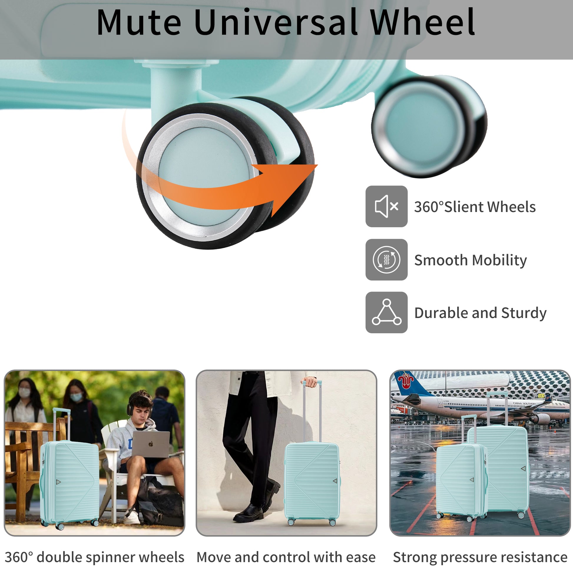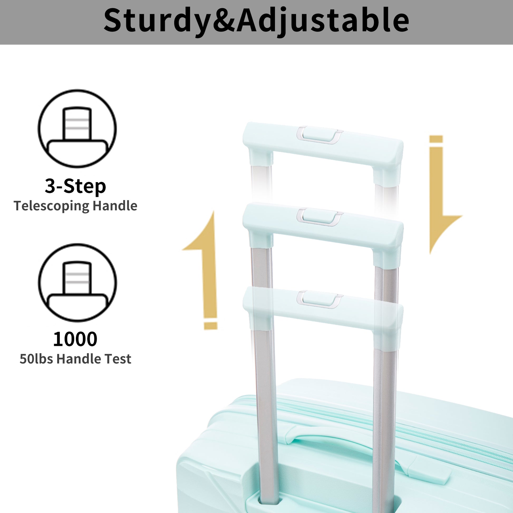 Pp Luggage Sets 3 Piece 20 24 28 , Expandable Carry On Luggage With Tsa Lock Airline Approved, Pp Materials Hard Shell And Lightweight Suitcase With Spinner Wheels Mint Green Mint Green Polypropylene