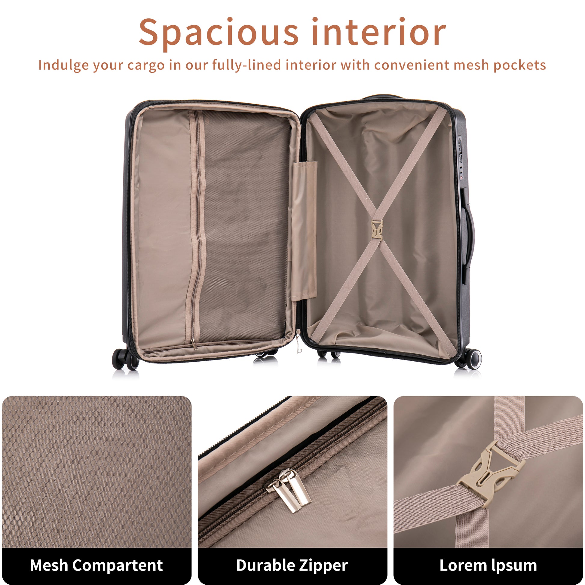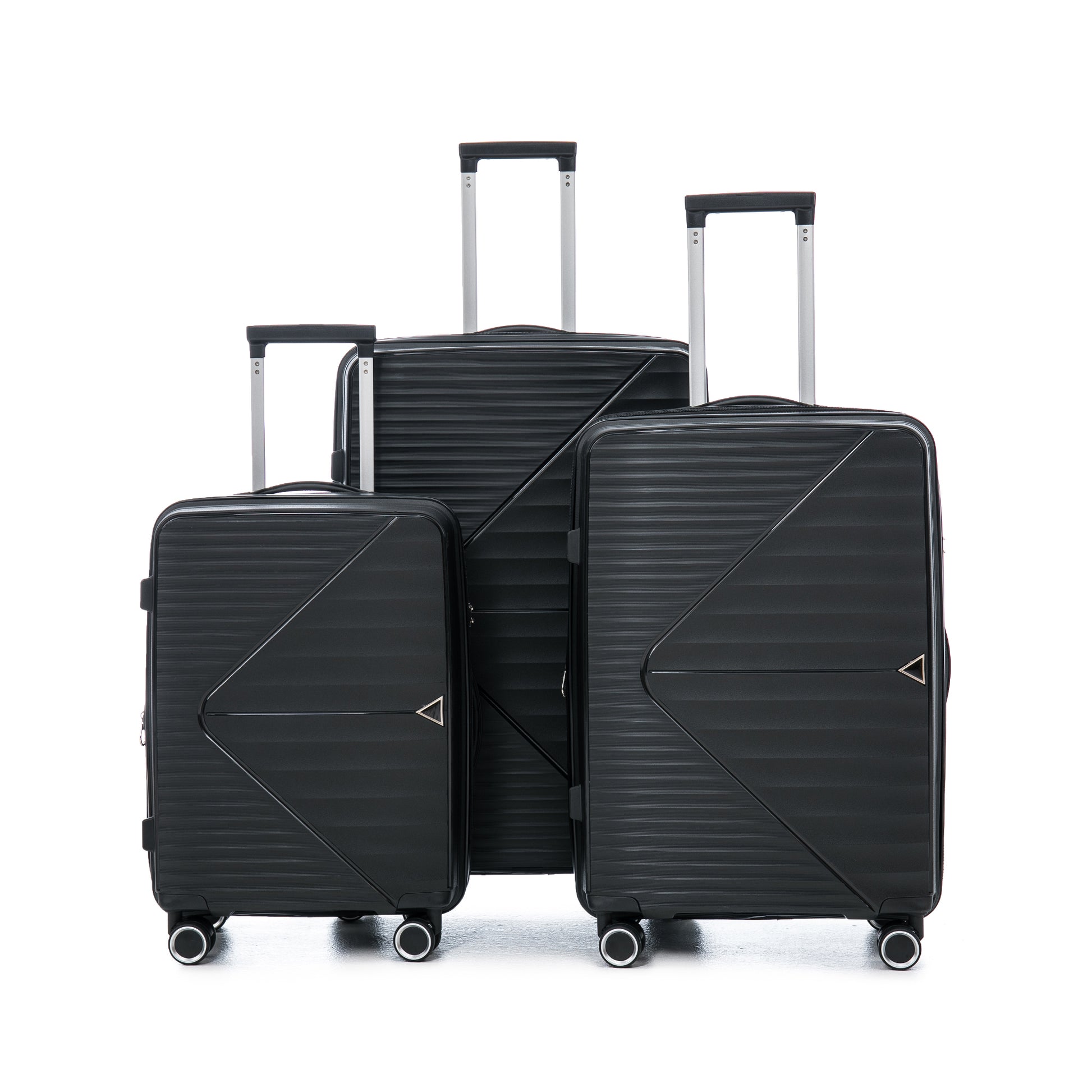 Pp Luggage Sets 3 Piece 20 24 28 , Expandable Carry On Luggage With Tsa Lock Airline Approved, Pp Materials Hard Shell And Lightweight Suitcase With Spinner Wheels Black Black Polypropylene