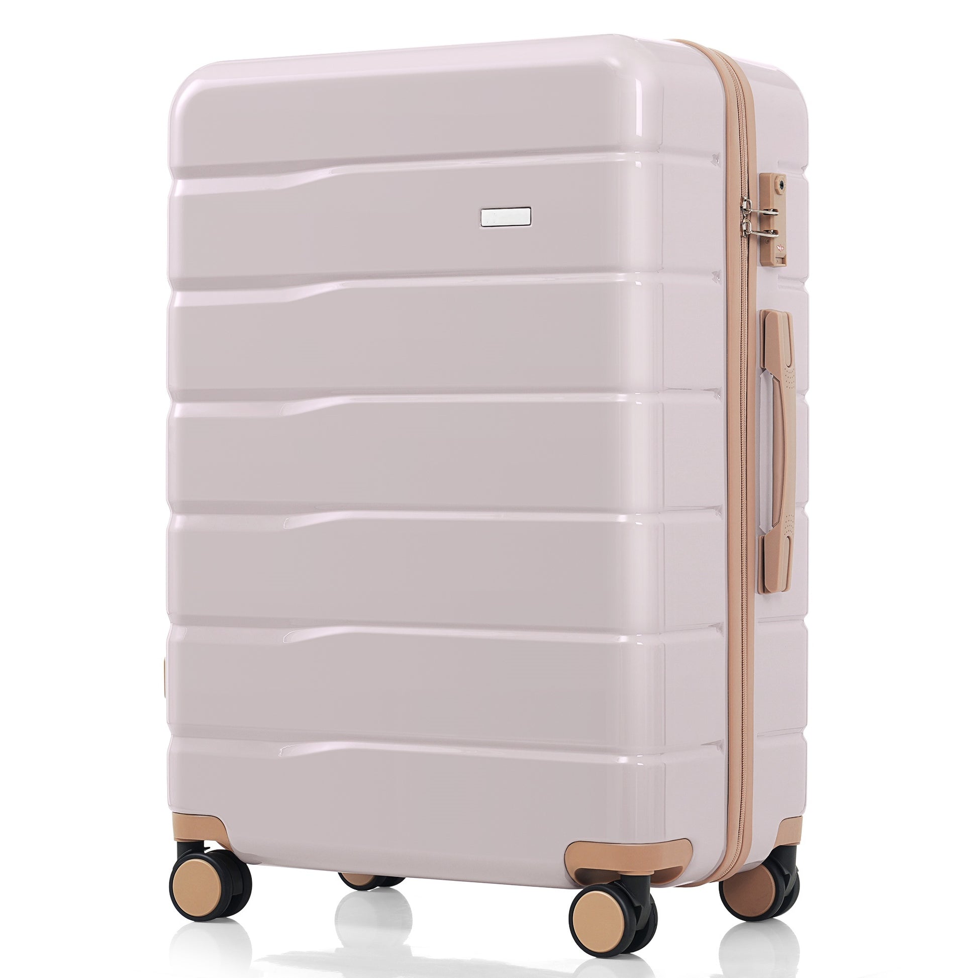 Premium Abs Travel Luggage Set3 Piece Tsa Lock Suitcase Group With 20, 24, And 28 Inch Sizes With 360 Spinner Wheels, Light Grey And Golden Light Grey Abs