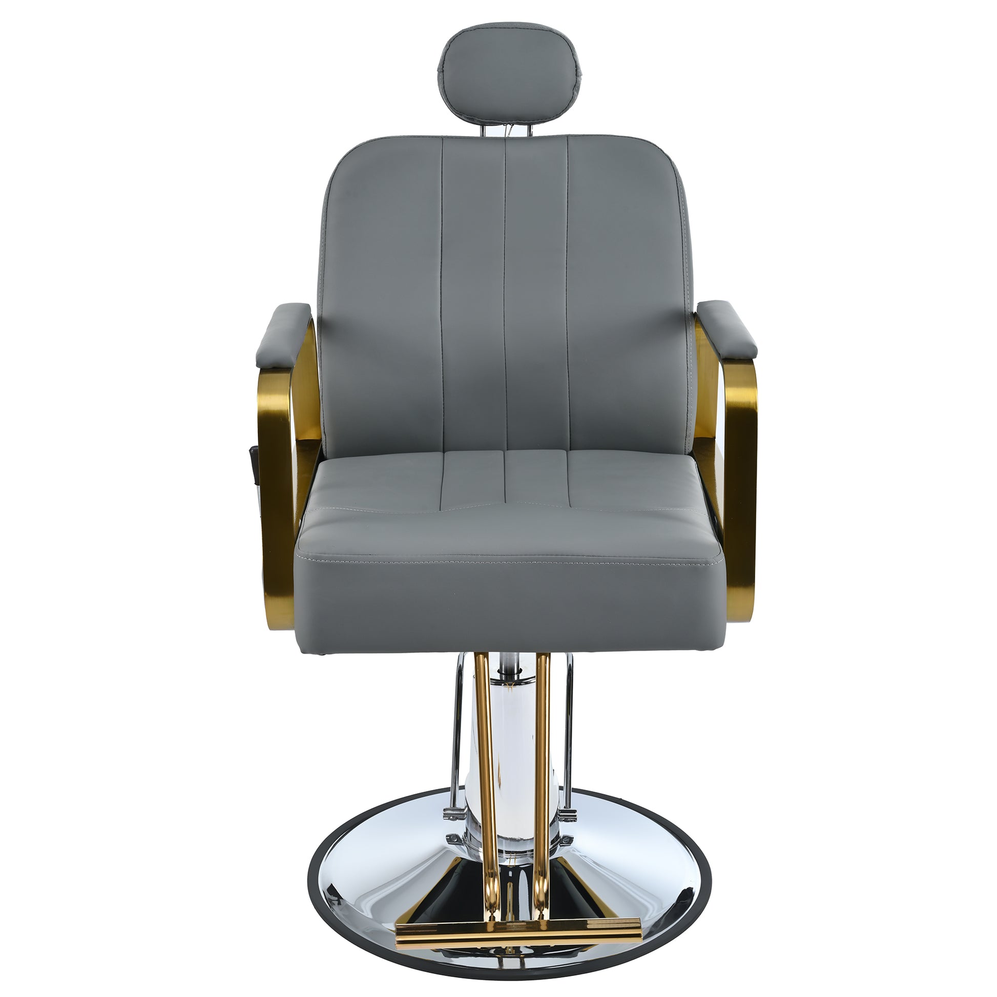 Premium Reclining Barber Chair Salon Chair For Hair Stylist With Heavy Duty Hydraulic Pump, 360 Rotation, Tattoo Chair Shampoo Beauty Salon Equipment, Max Load Weight 400 Lbs, Gray Gray Pu Classic,Modern Metal