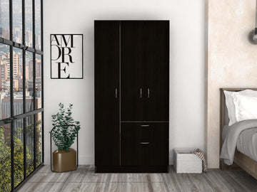 Primavera Armoire, Double Door Cabinets, One Drawer, Metal Rod, Five Shelves Black White Multicolor Particle Board Particle Board
