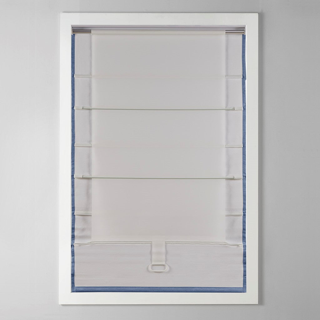 Printed Faux Silk Room Darkening Cordless Roman Shade Blue Polyester