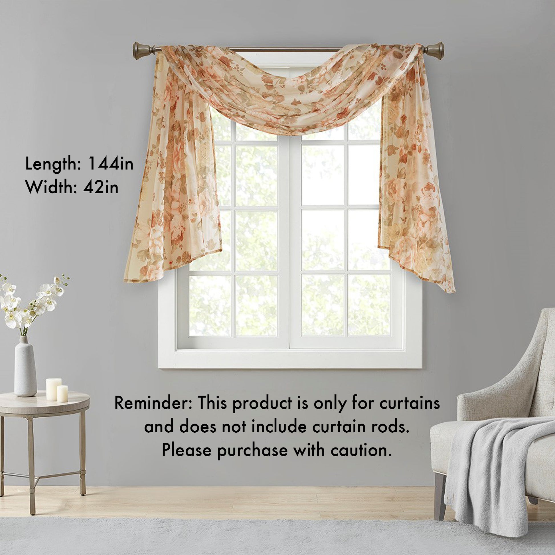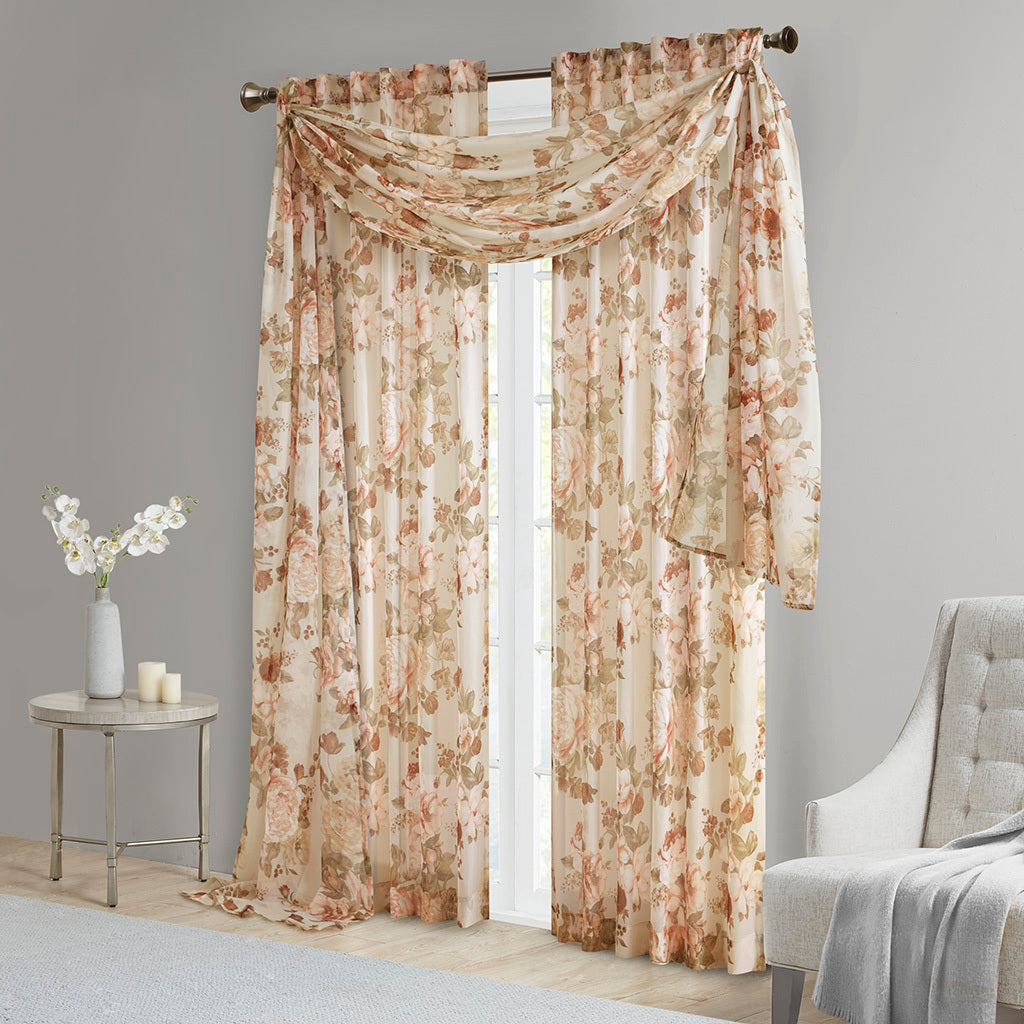 Printed Floral Voile Sheer Scarf Blush Polyester
