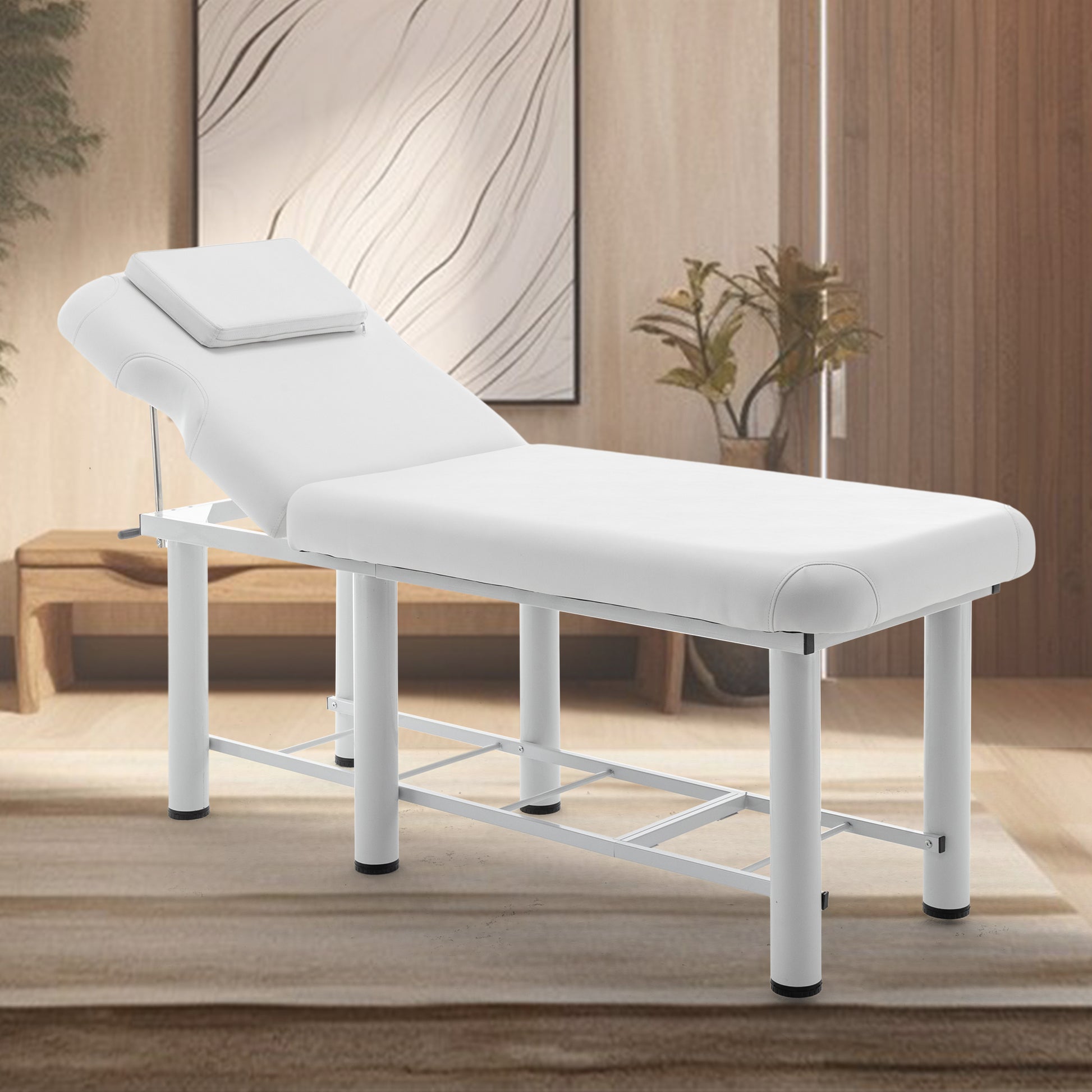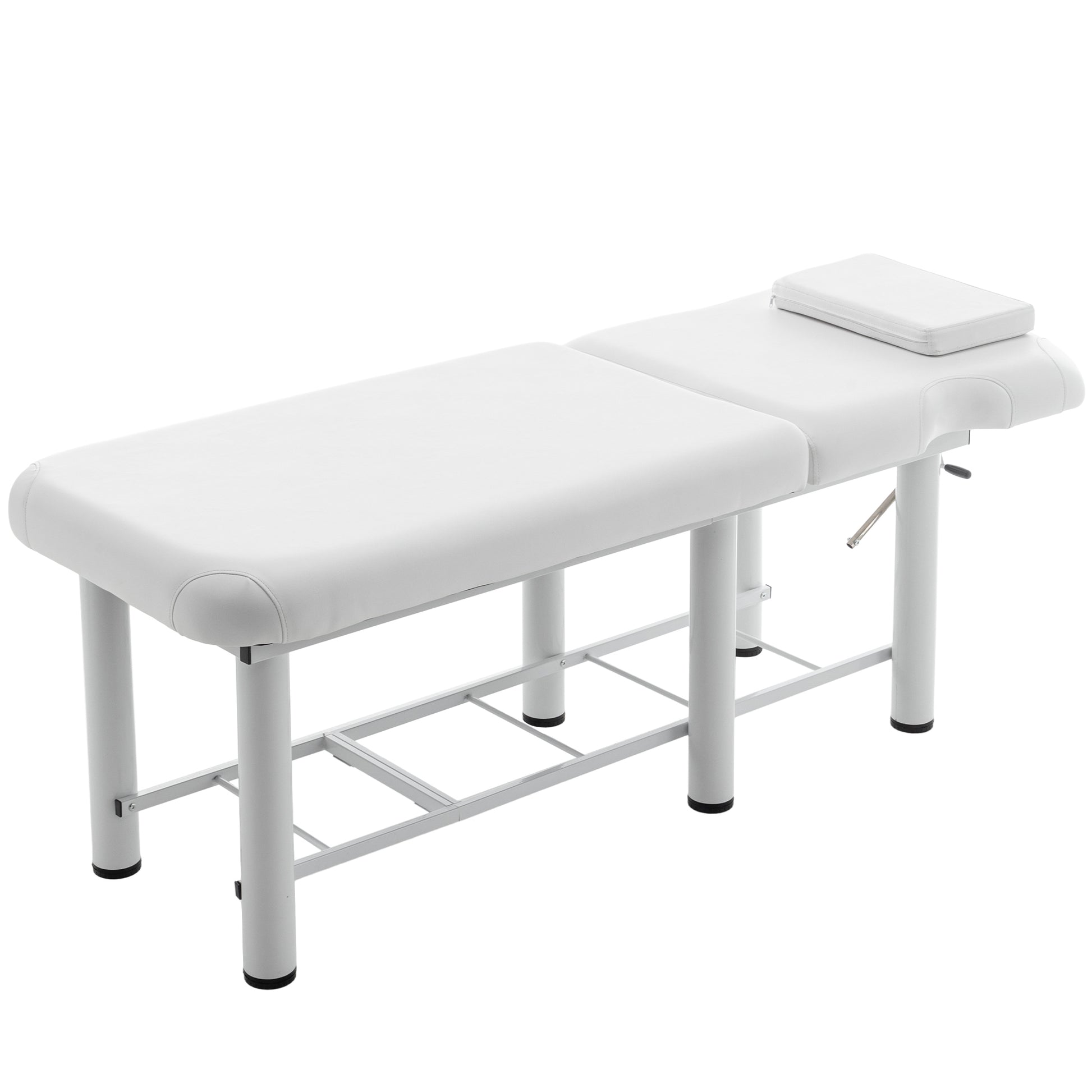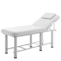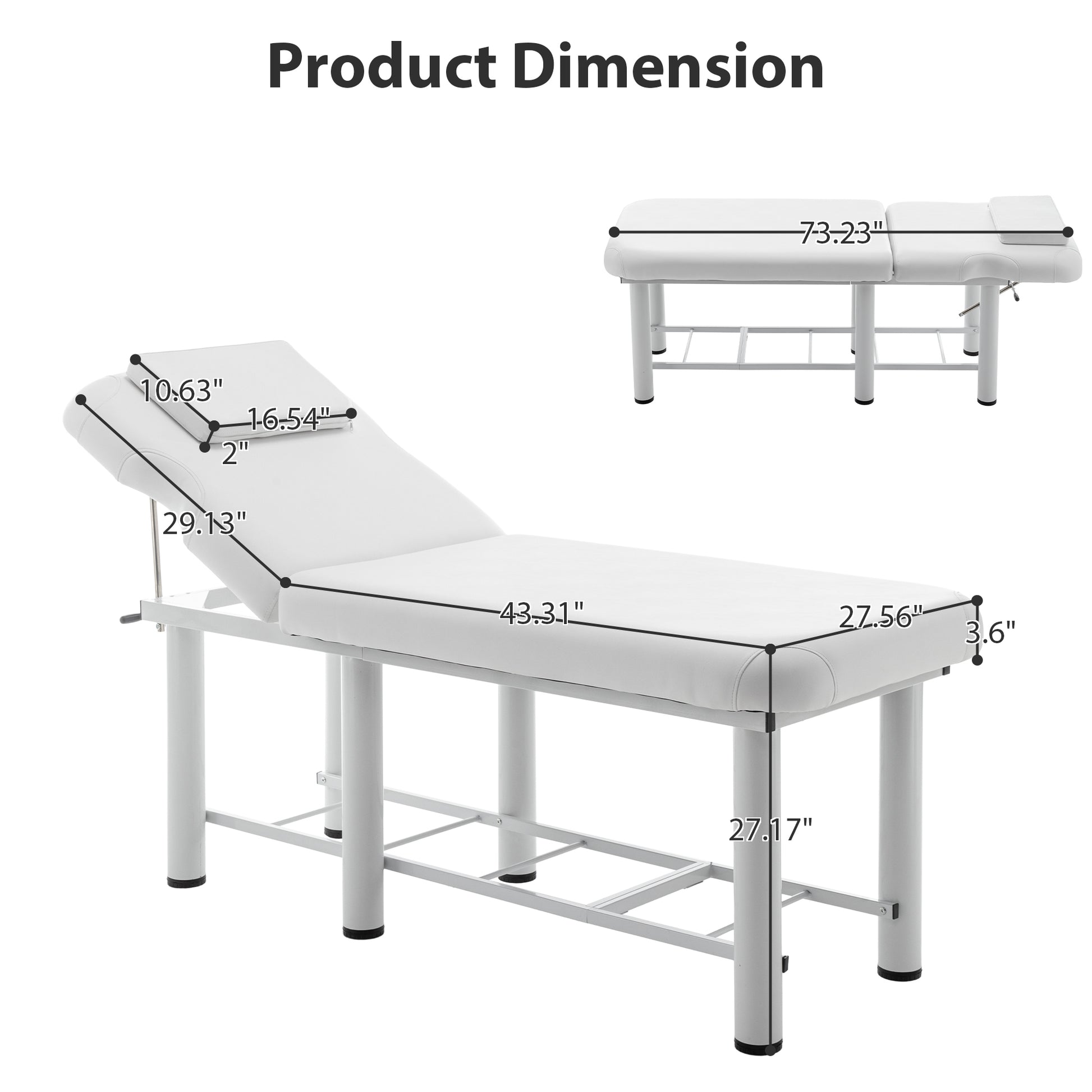 Professioanl Massage Tablebackrest Adjustable, Removable Headrest, Bottom Shelf Storagememory Foam Layer Salon Bed,White White Pu
