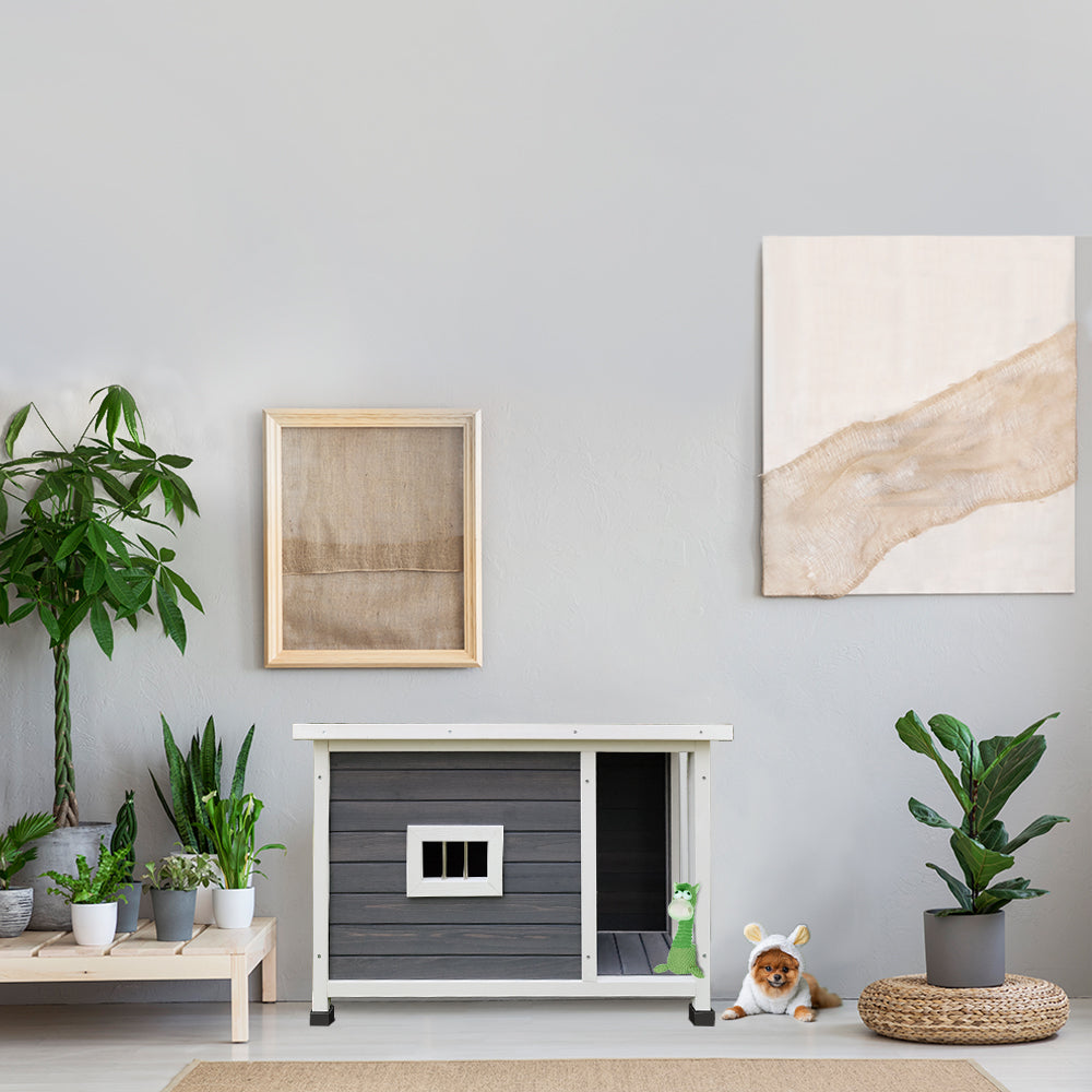 Puppy Dog Kennel ,Waterproof Dog Cage, Wooden Dog House With Porch Deck Gray Solid Wood