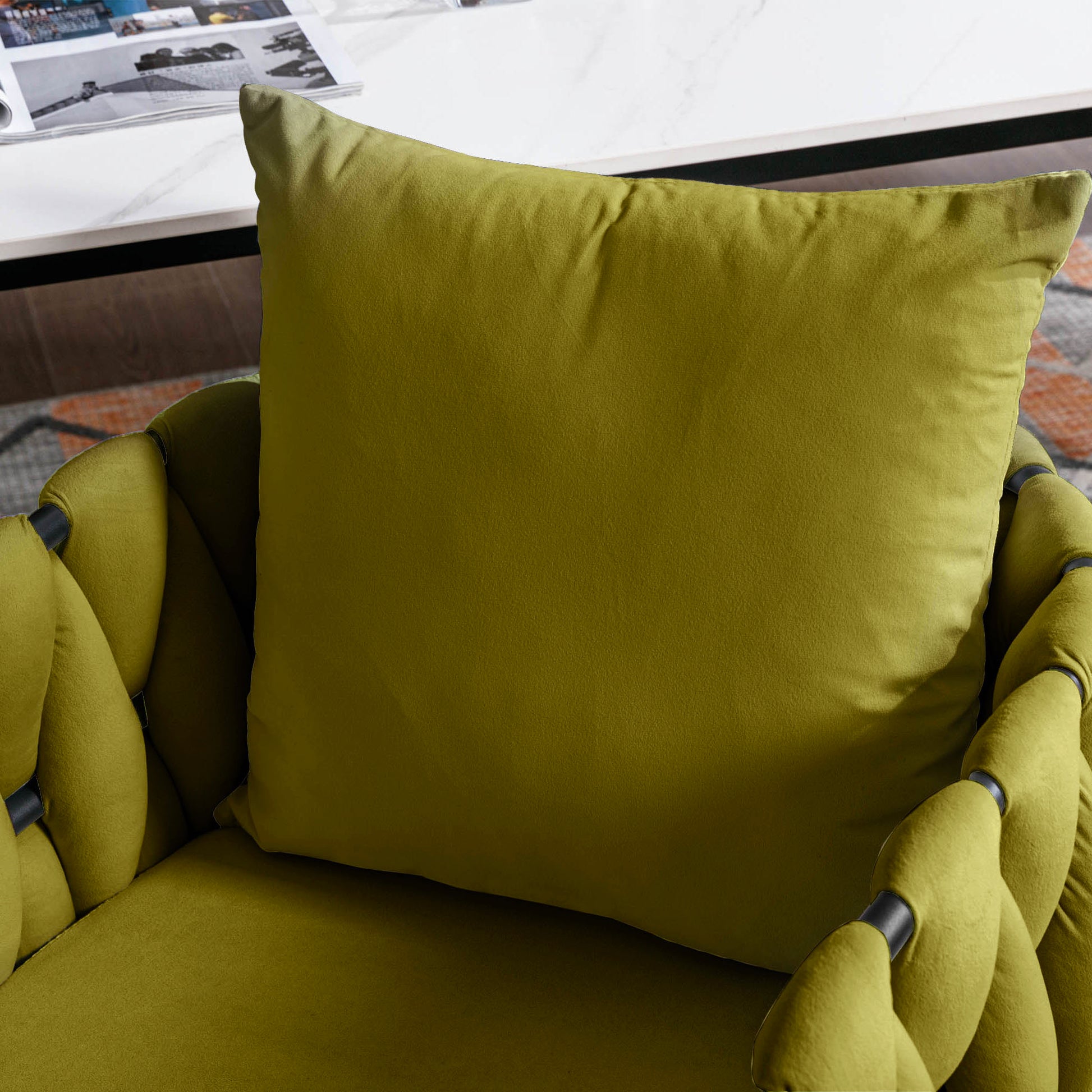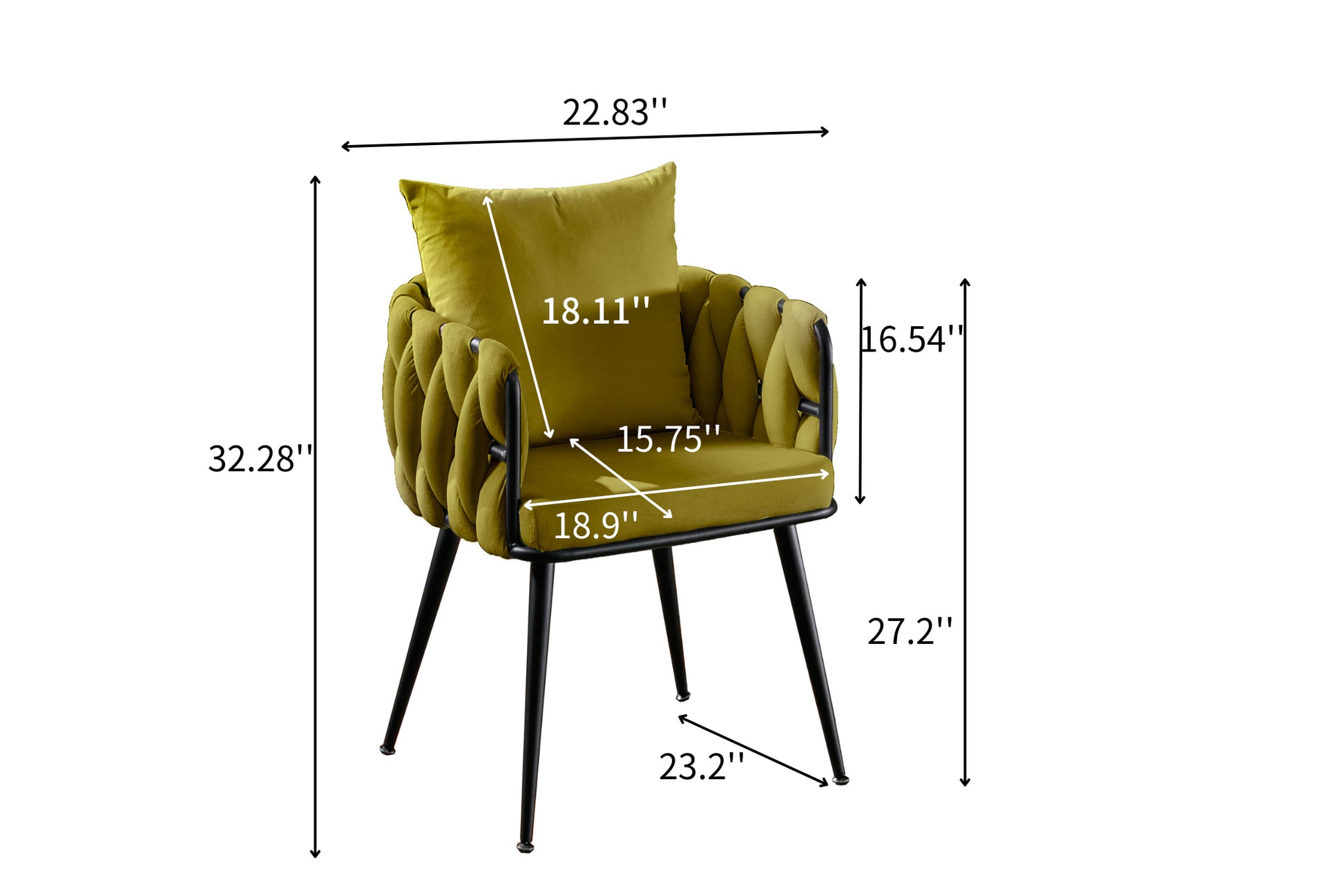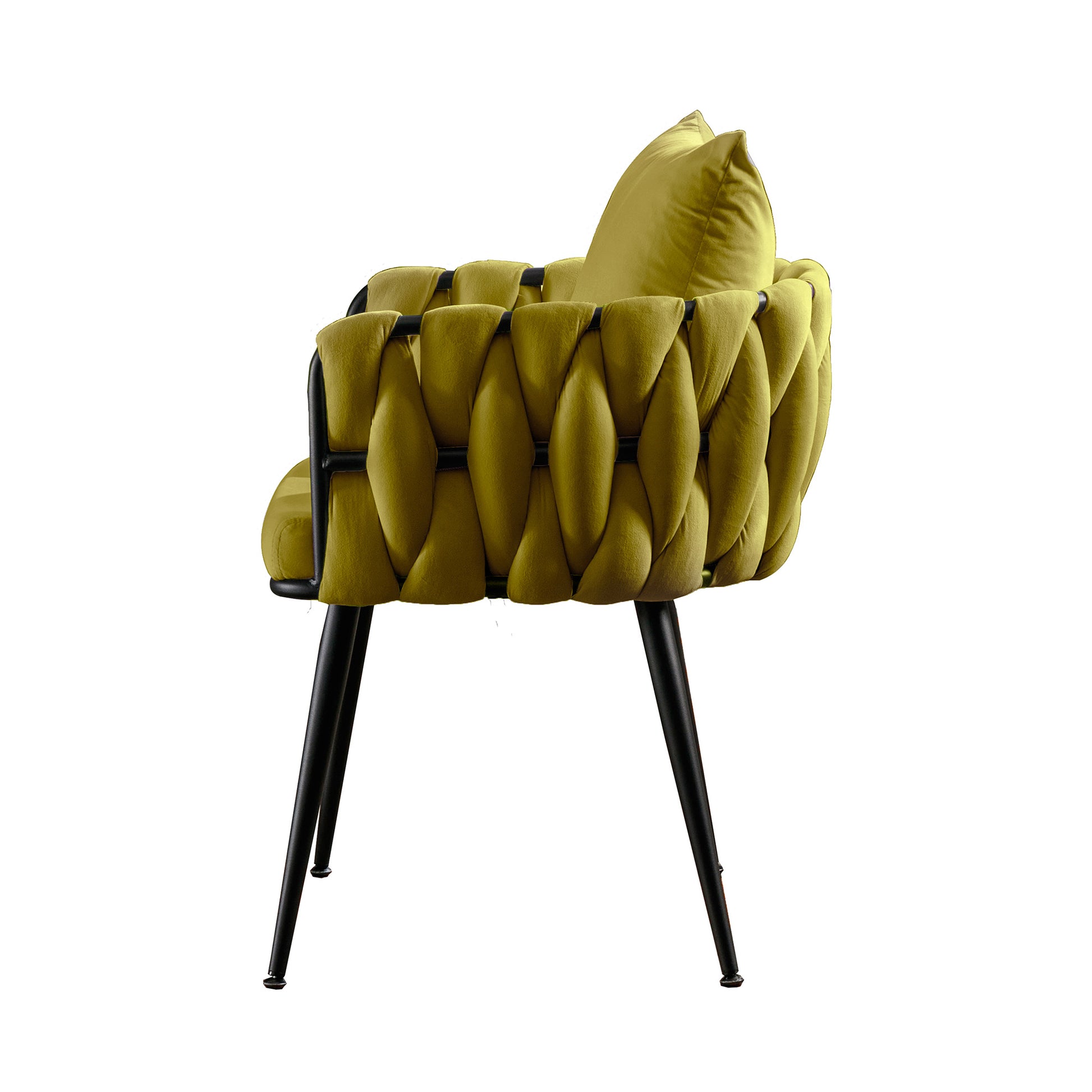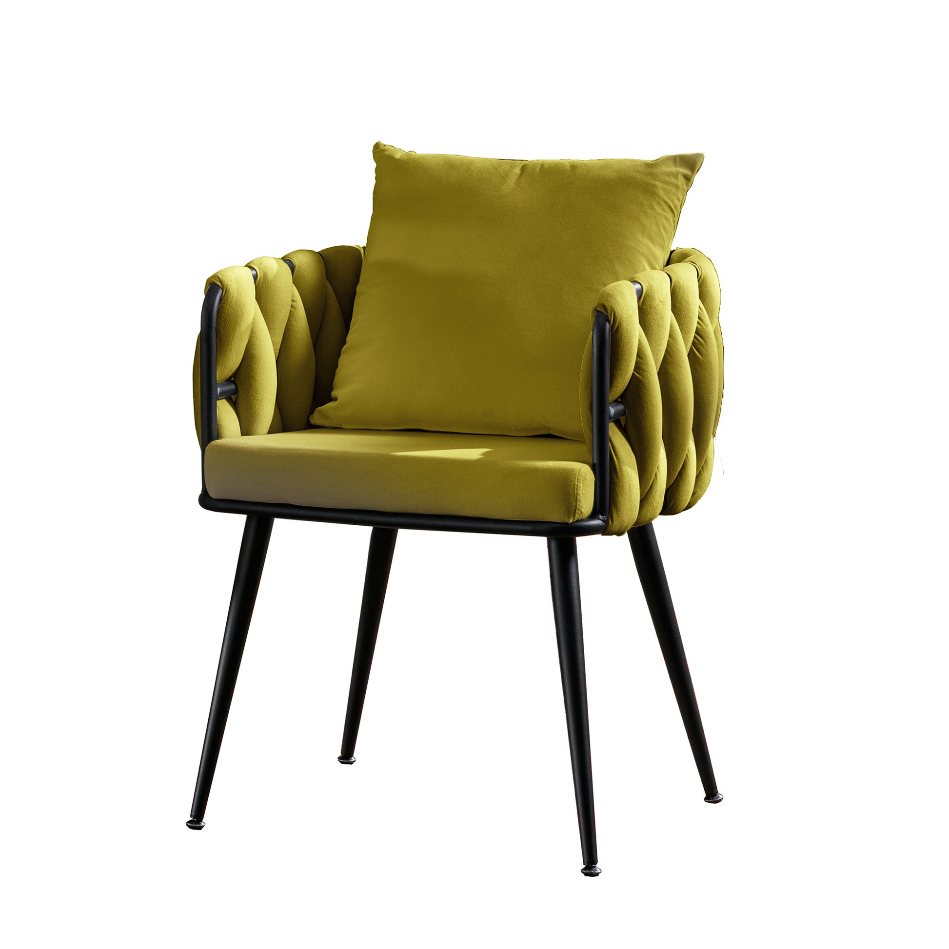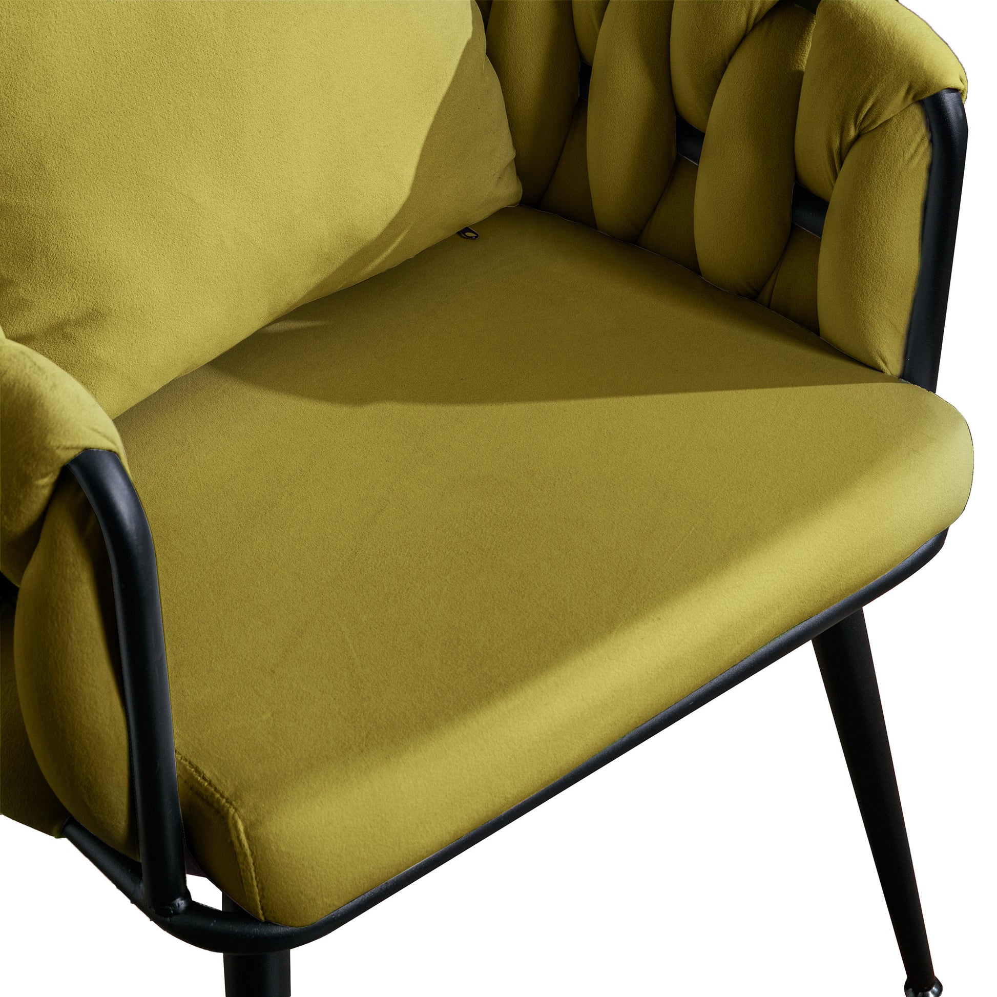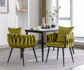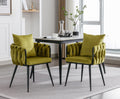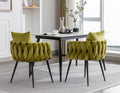 Pure Olive Modern Velvet Dining Chairs Set Of 2 Hand Weaving Accent Chairs Living Room Chairs Upholstered Side Chair With Black Metal Legs For Dining Room Kitchen Vanity Living Room Olive Velvet