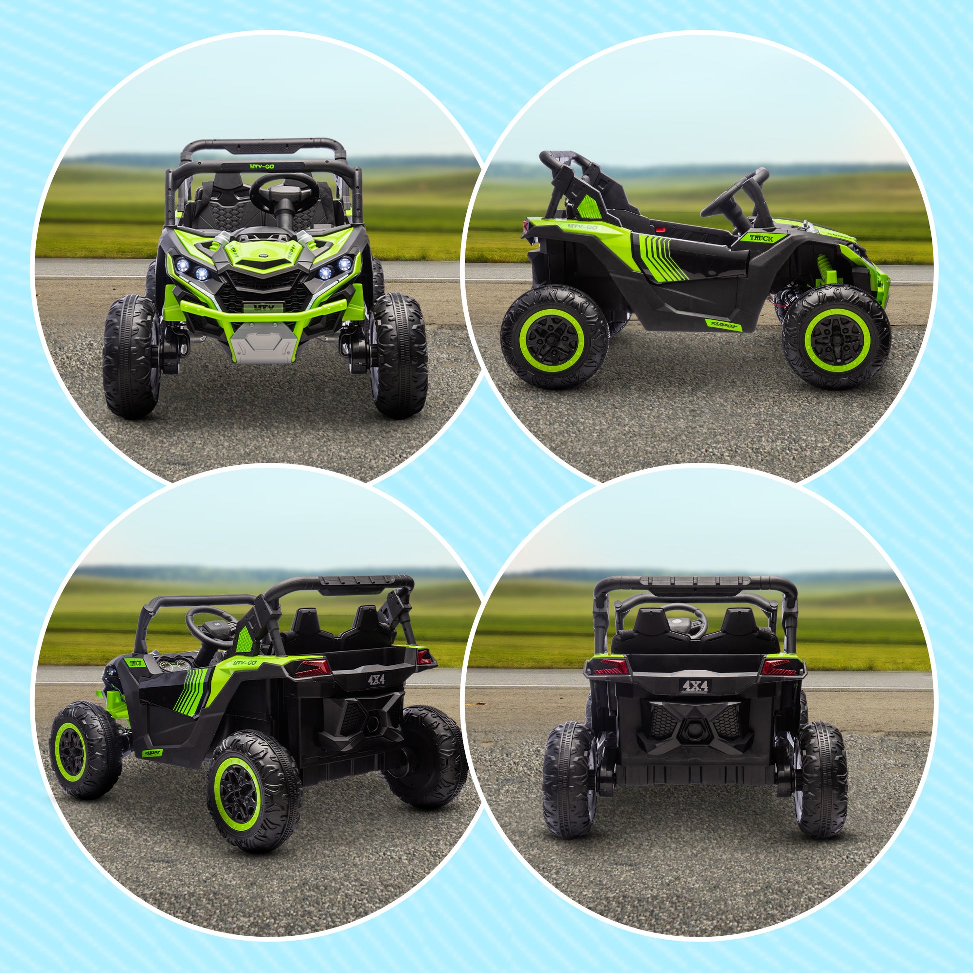 Qaba 24V 7Ah Ride On Utv, 2 Seater 4Mph Kids Electric Car Ride On Battery Powered Toy With 4 Shock Absorbers, Music Horn And Led Lights, For Toddlers 3 8 Years, Green Green Plastic