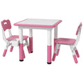Qaba 3 Piece Kids Table And Chairs, Height Adjustable Toddler Table And Chair Set With Storage, Easy To Wipe Activity Table, 2 Chairs For Daycare Classroom & Ages 18 Months 5 Years, Pink Pink Mdf Metal