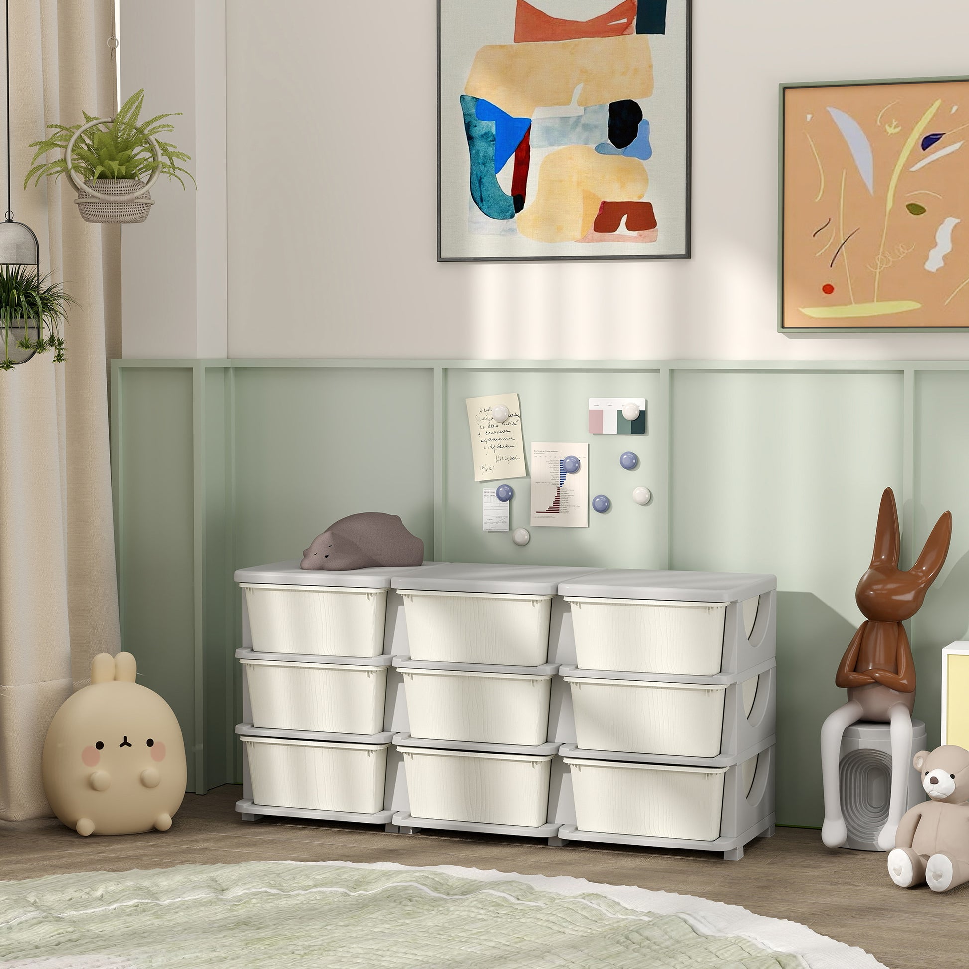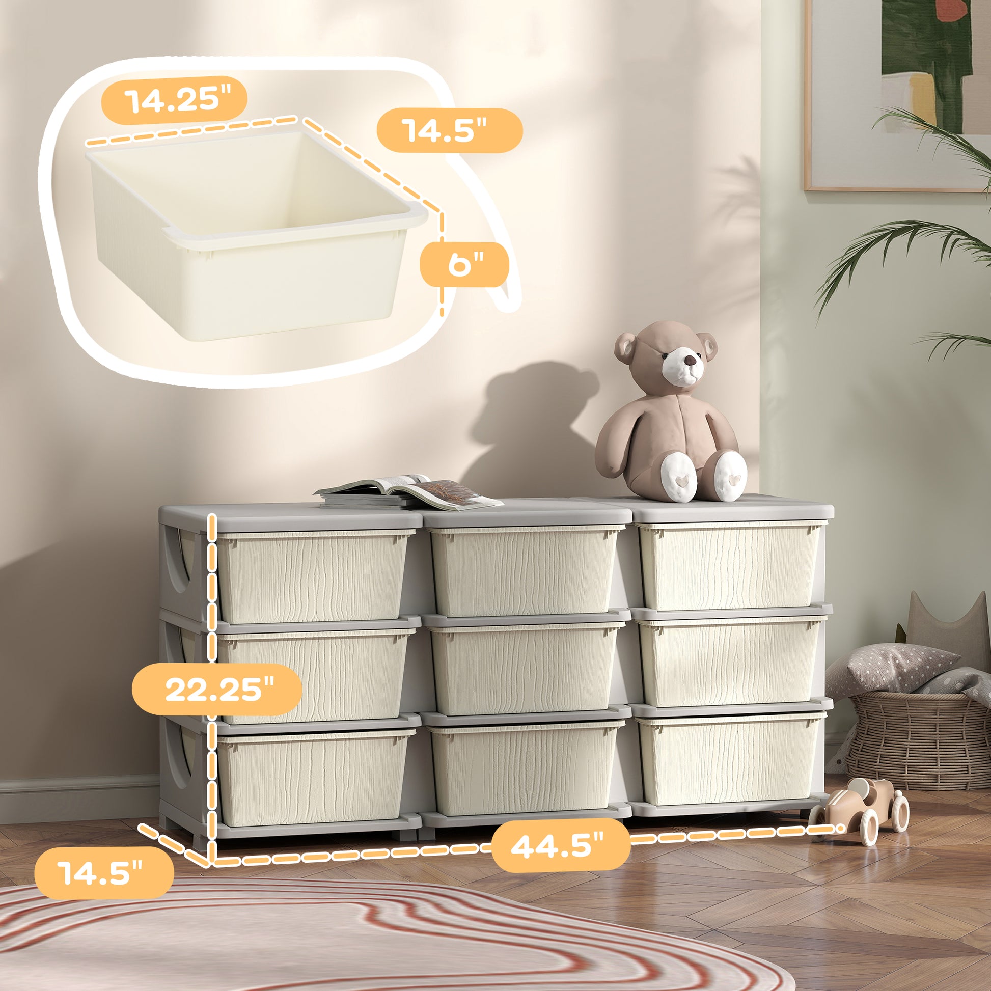 Qaba 3 Tier Kids Storage Unit, 9 Drawer Chest Toy Organizer Plastic Bins For Kids Bedroom Nursery Kindergarten Living Room For Boys Girls Toddlers, Cream White Cream White Polypropylene