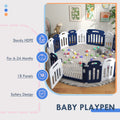 Qaba Baby Playpen, 18 Panels Sturdy Safety Play Yard For Babies And Toddlers, 85" X 57" Foldable Baby Playard, Indoor Outdoor Kids Activity Center With Anti Slip Base Blue Plastic
