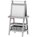 Qaba Easel For Kids, Double Sided Kids Art Easel With Paper Roll, Magnetic Whiteboard, Chalkboard & Storage, Standing Toddler Easel For Painting & Drawing, Gift For Boys, Girls Ages 3 6 Years, Gray Gray Mdf