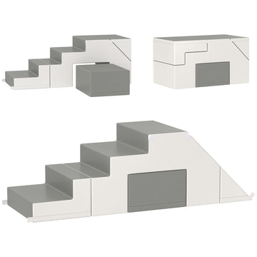 Qaba Foam Play Set For Toddlers And Children, Easy To Clean 2 Piece Soft & Safe Kids Climbing Set For Crawling Or Sliding, Light Gray Light Gray Pu