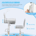 Qaba Kids Desk And Chair Set, Height Adjustable School Study Table And Chair, Student Writing Desk With Tilt Desktop, Led Light, Pen Box, Drawer, Reading Board, Cup Holder, And Pen Slots, Grey Grey